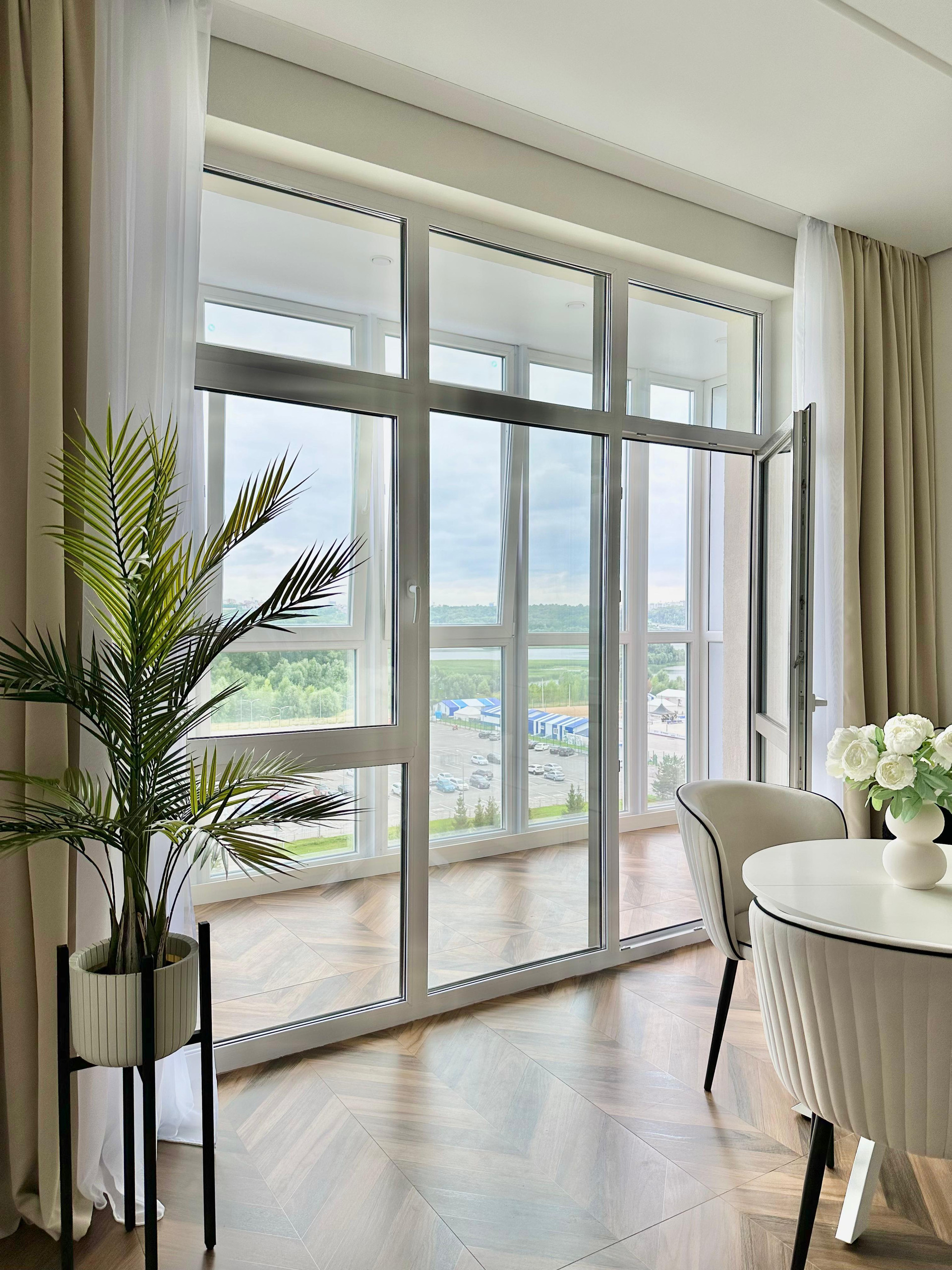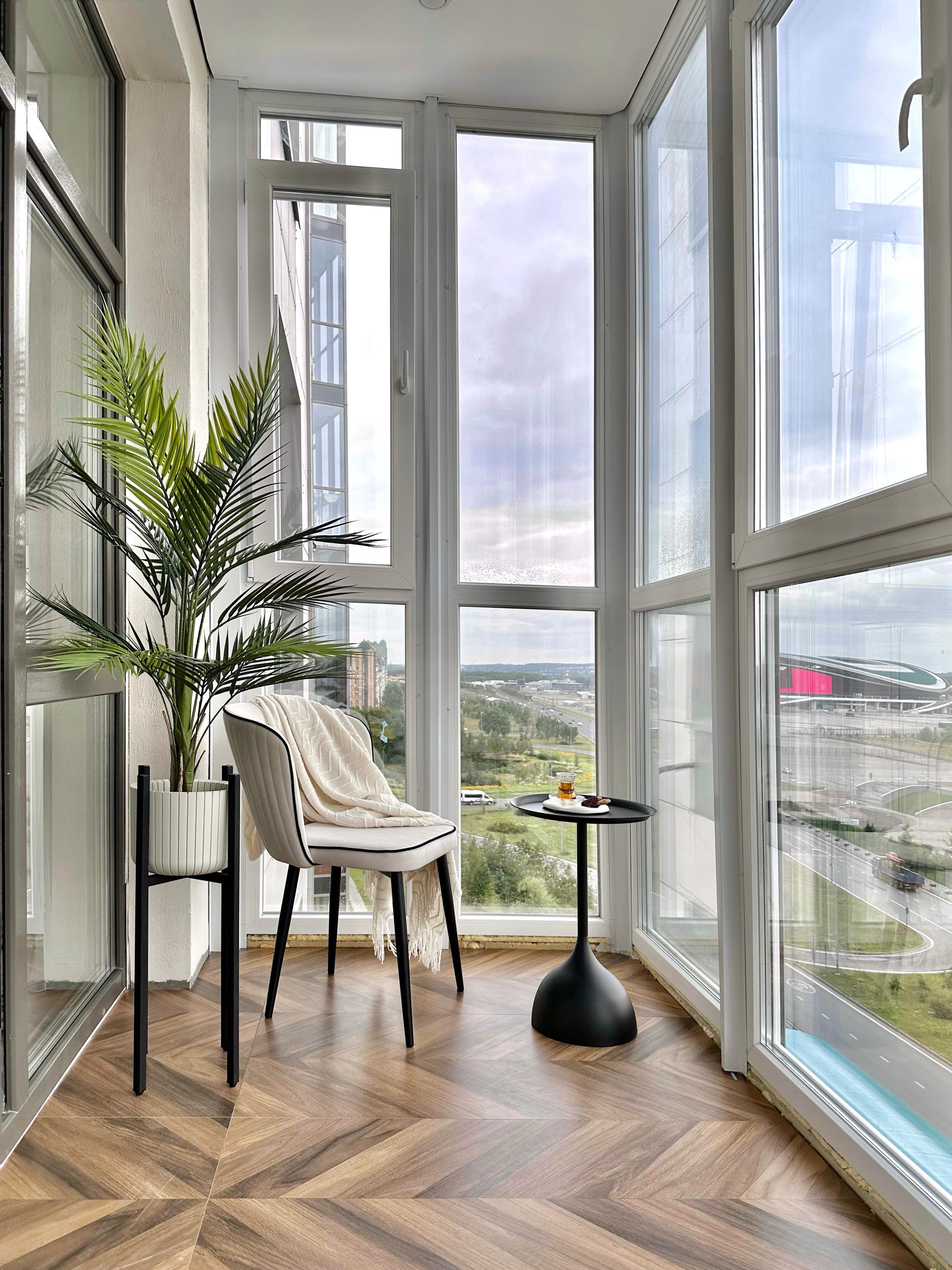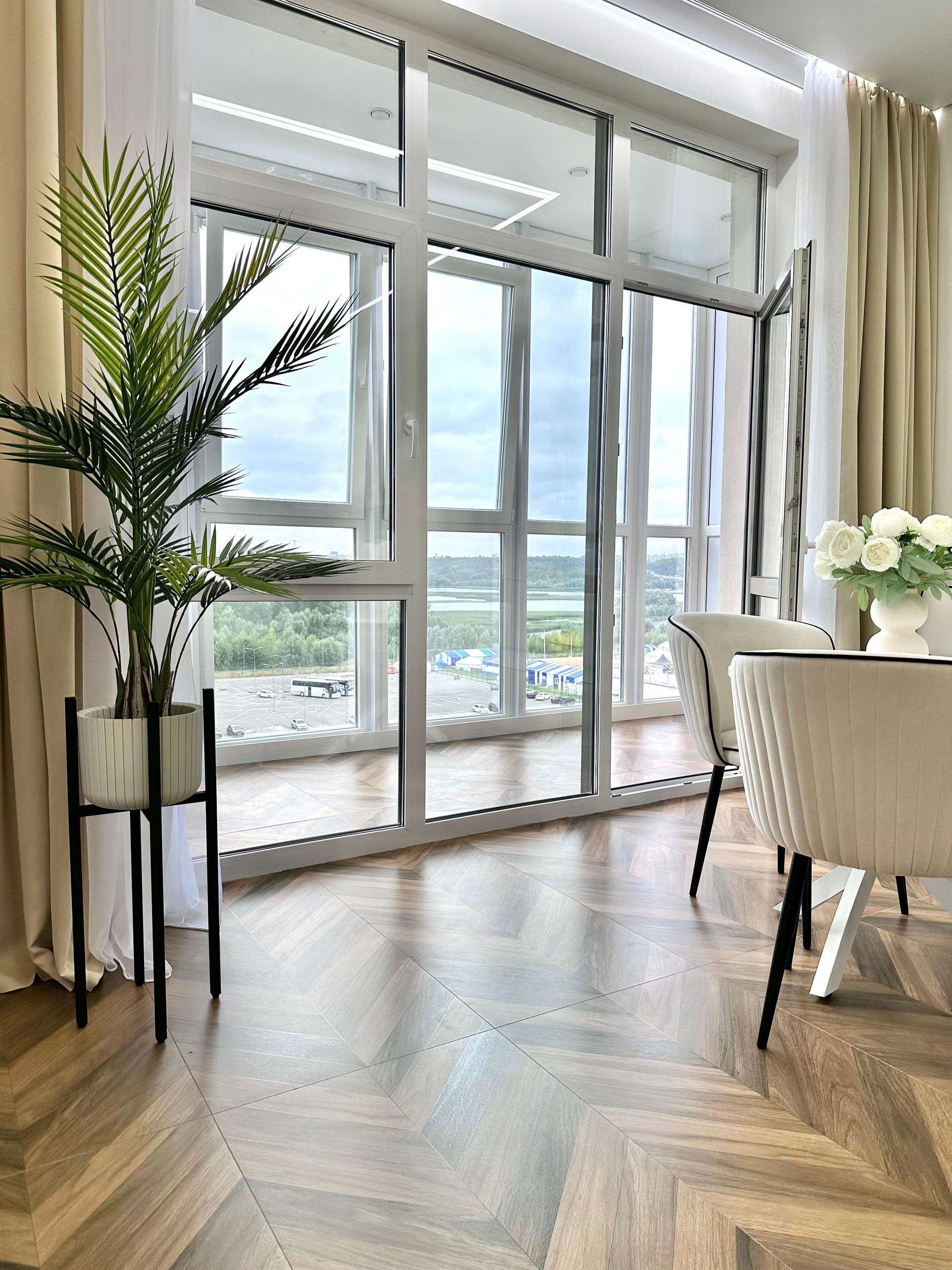 Лоджия полностью утеплена вторым контуром , теплыми полами, это как полноценная комната зимой и летом.