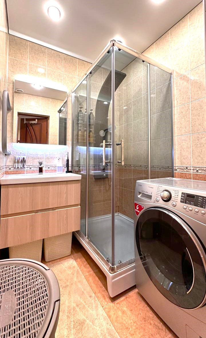 - Сан узел в коридоре - в плитке
