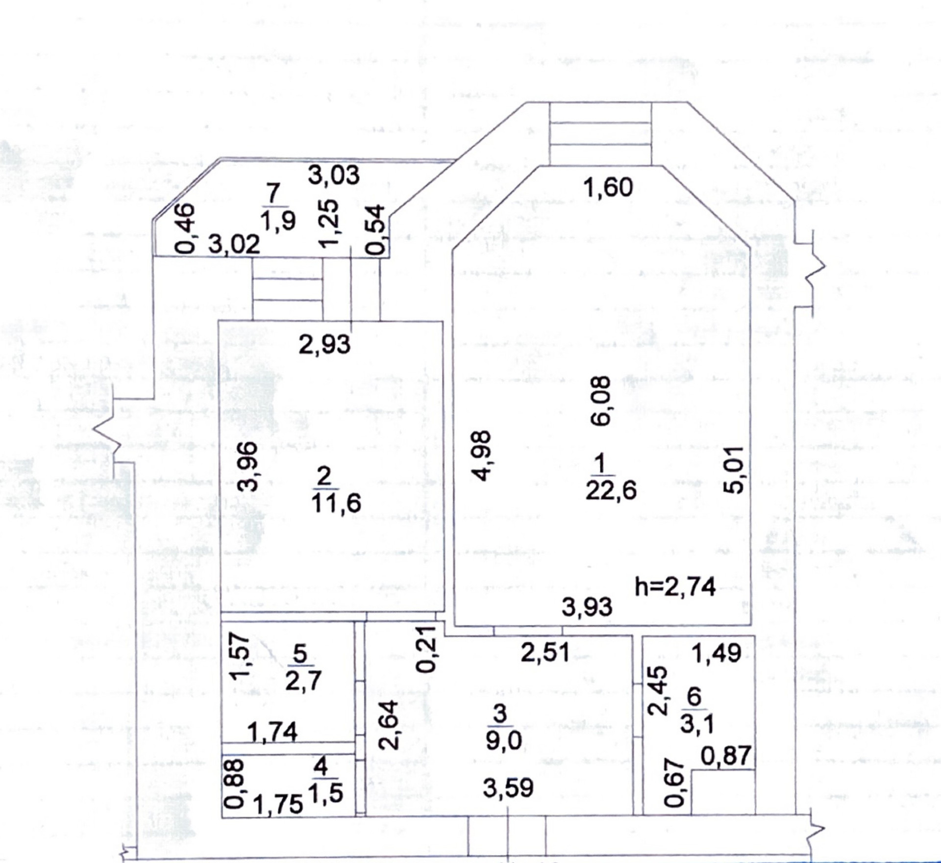 Высота потолков 2.7 м