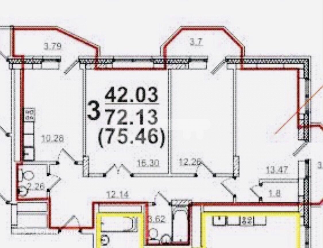 Общая площадь 70 м2 без учёта трех балконов с панорамным остеклением, жилая 42 м2, кухня 11 м2, санузел совмещен