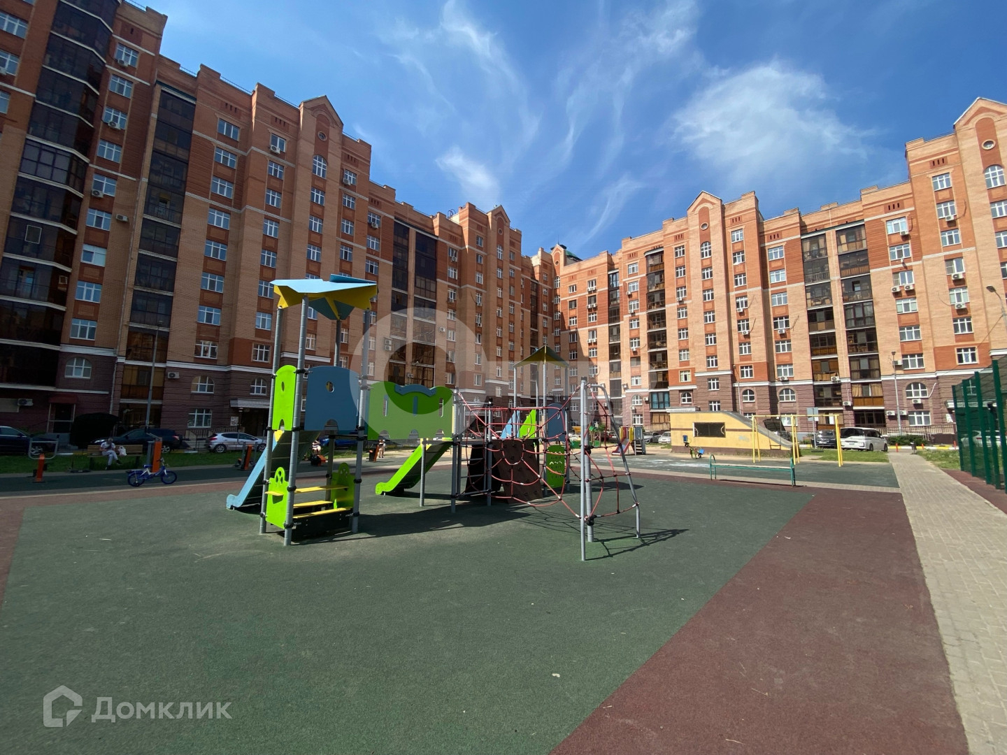 Большая парковка и детская площадка во дворе