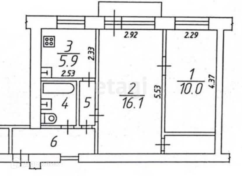 2-комнатная квартира, 44.7 м2, этаж 5 / 6, на продажу в Казани, улица Ташаяк, 1