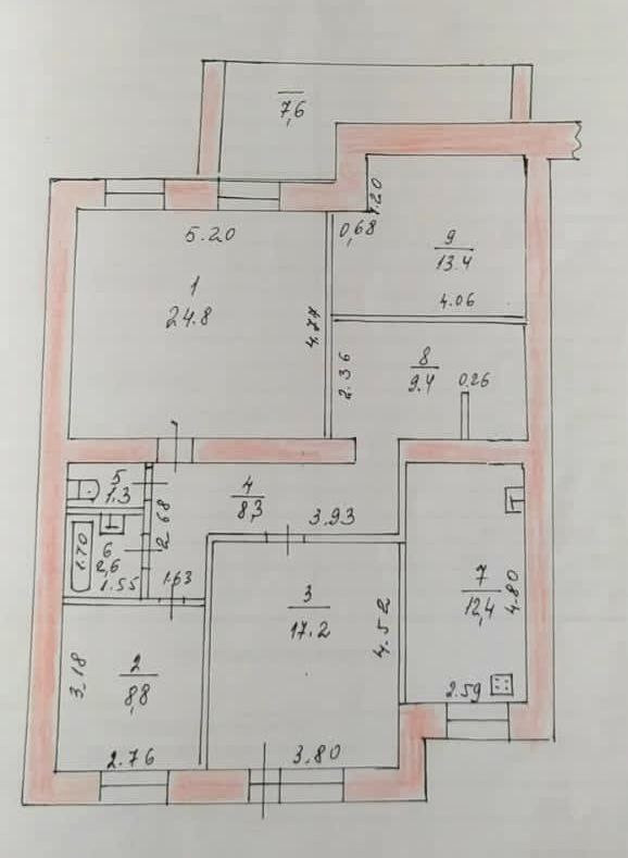 -Комнаты 24,8 кв.м., 17,2 кв.м., 13,4 кв.м., 8,8 кв.м.
