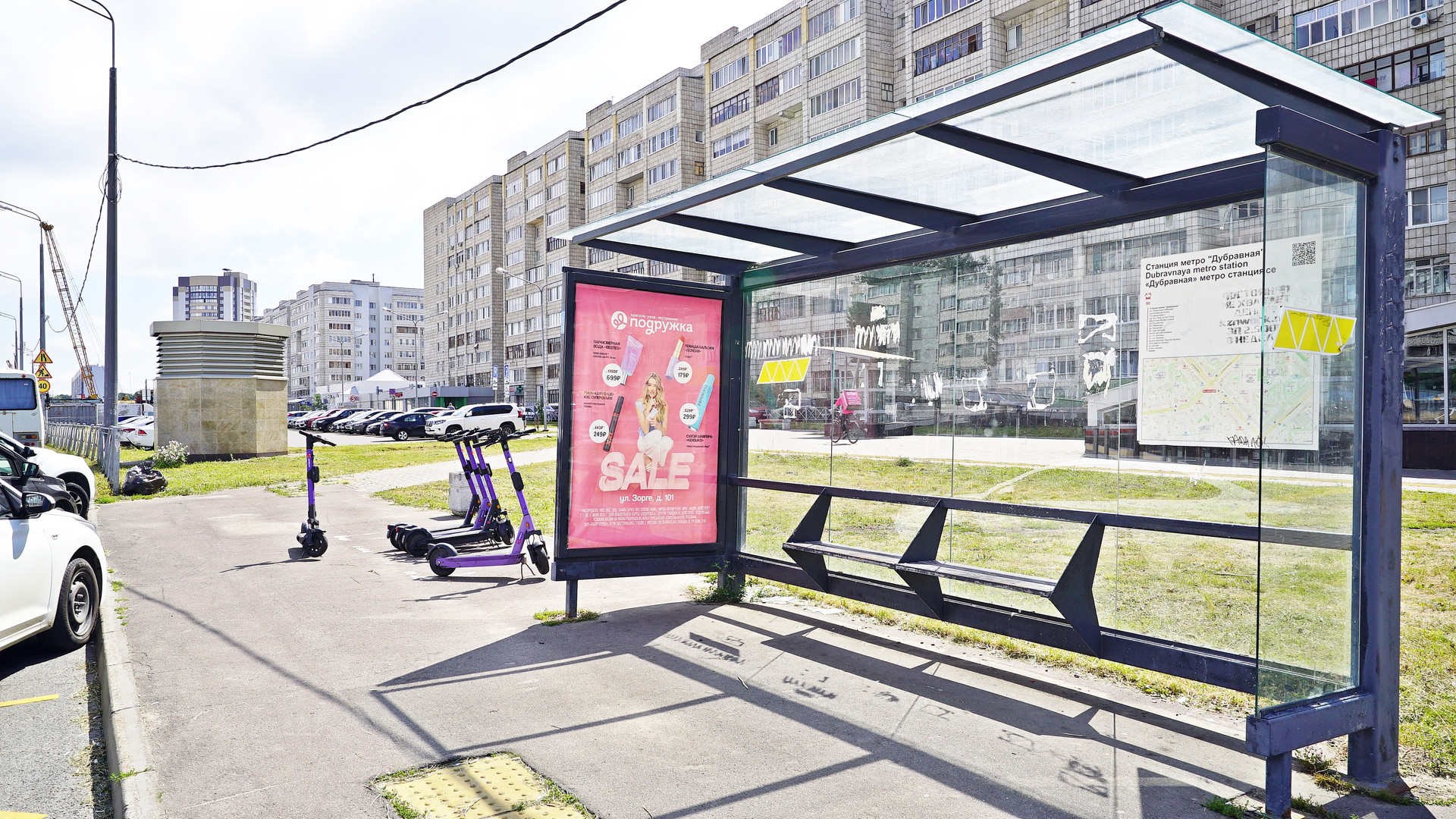 Остановки: станция метро Дубравная, Фучика. Улицы рядом: Проспект Победы, Дубравная.