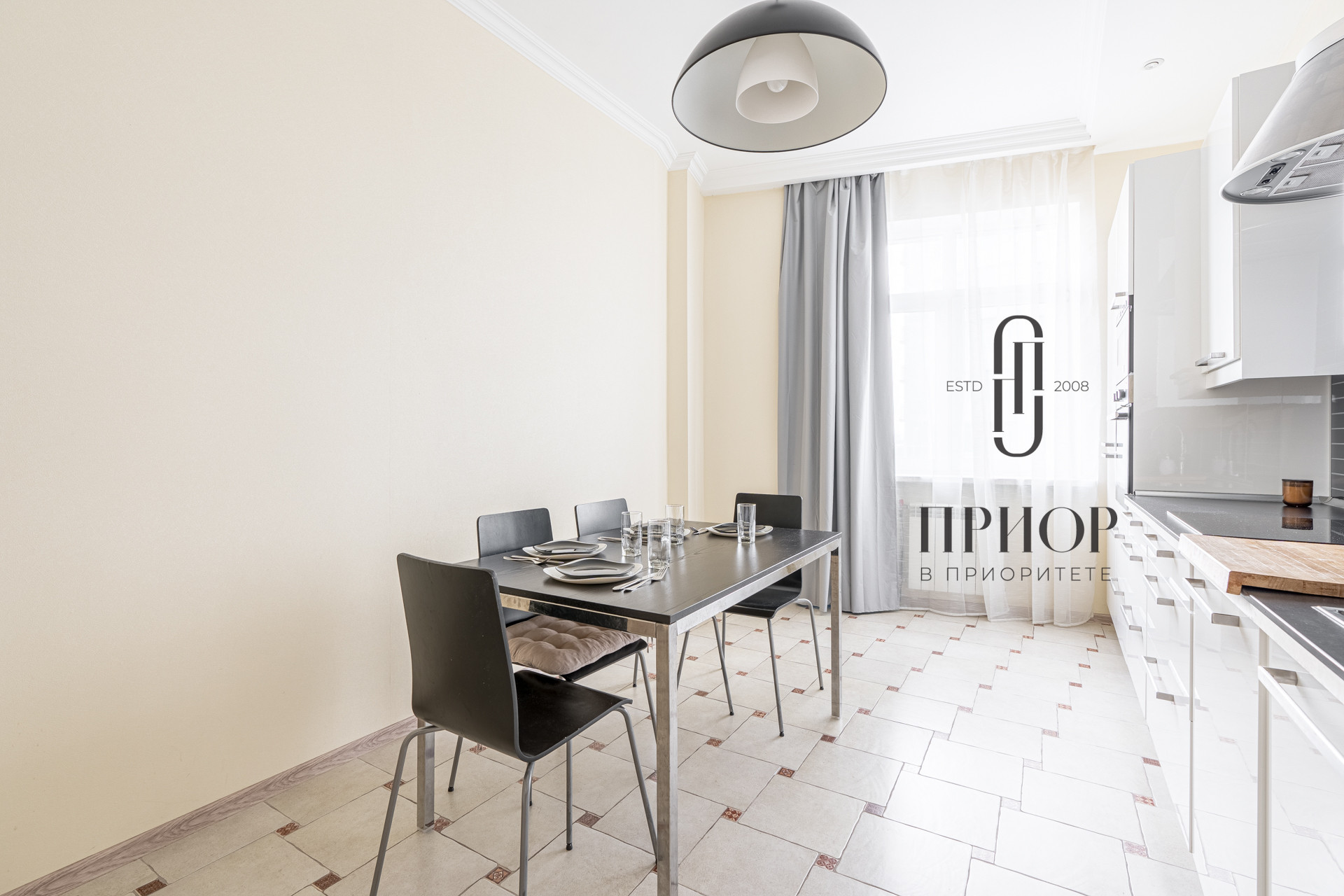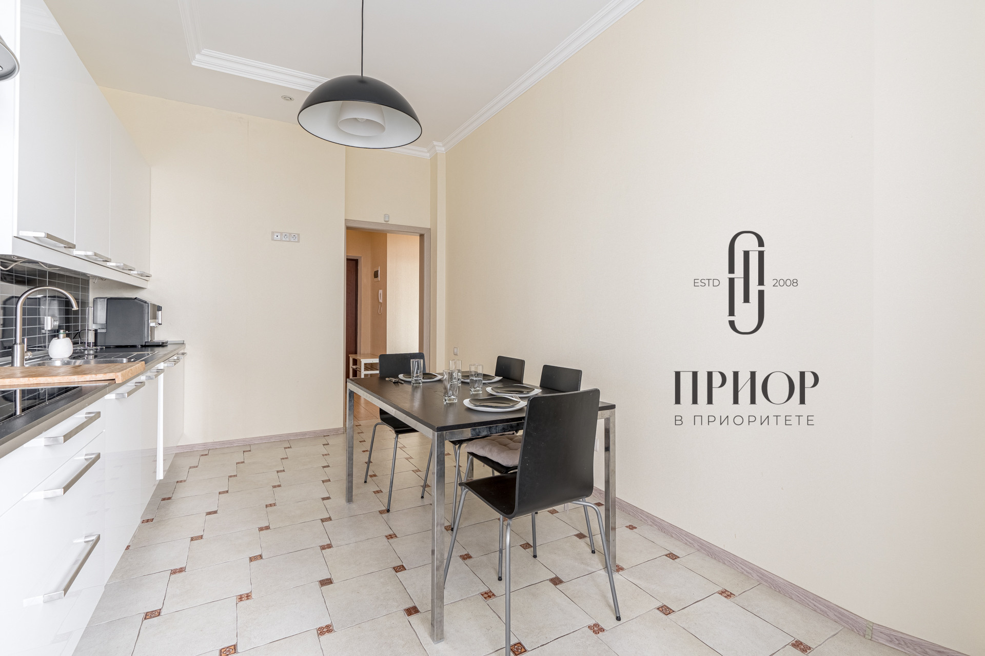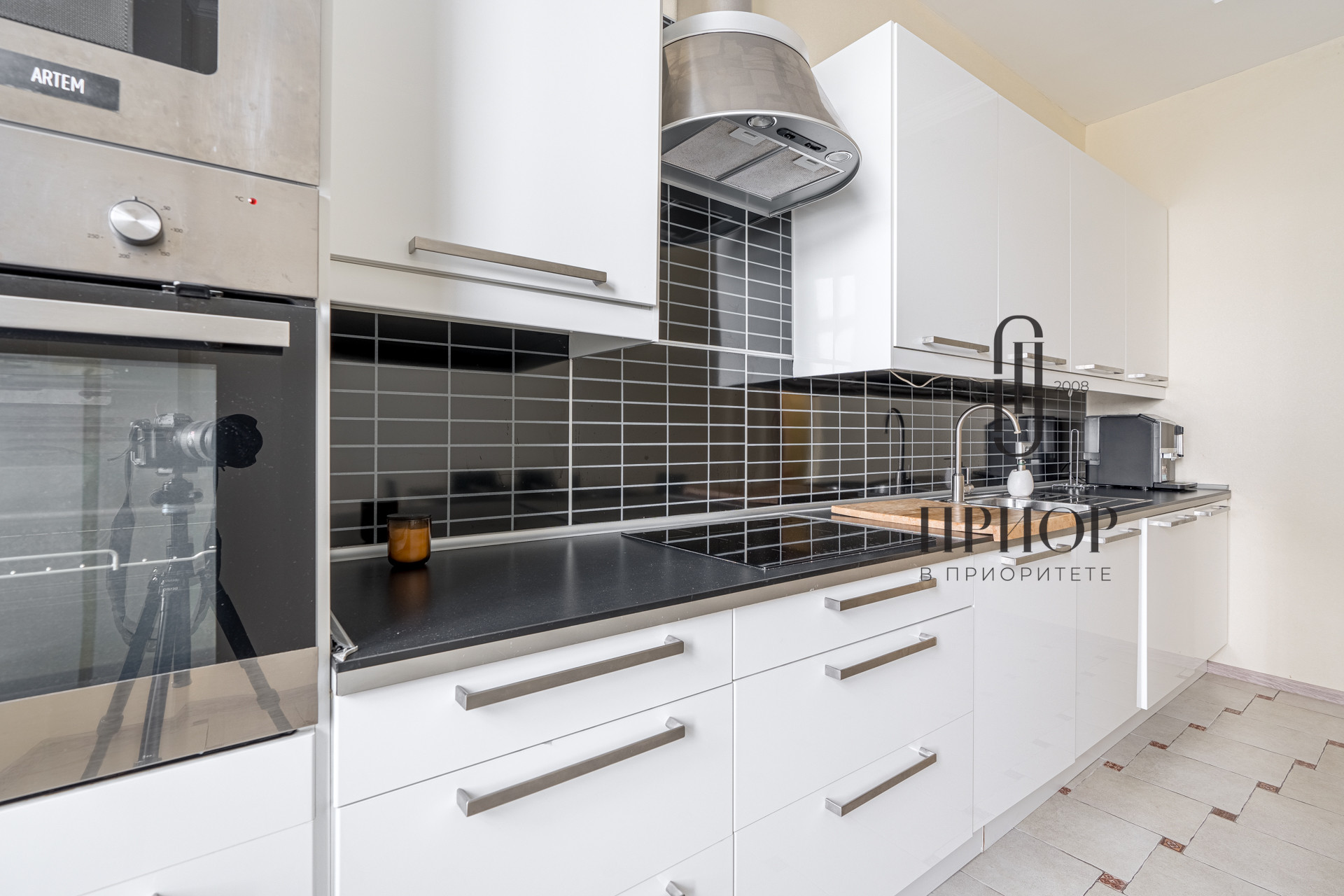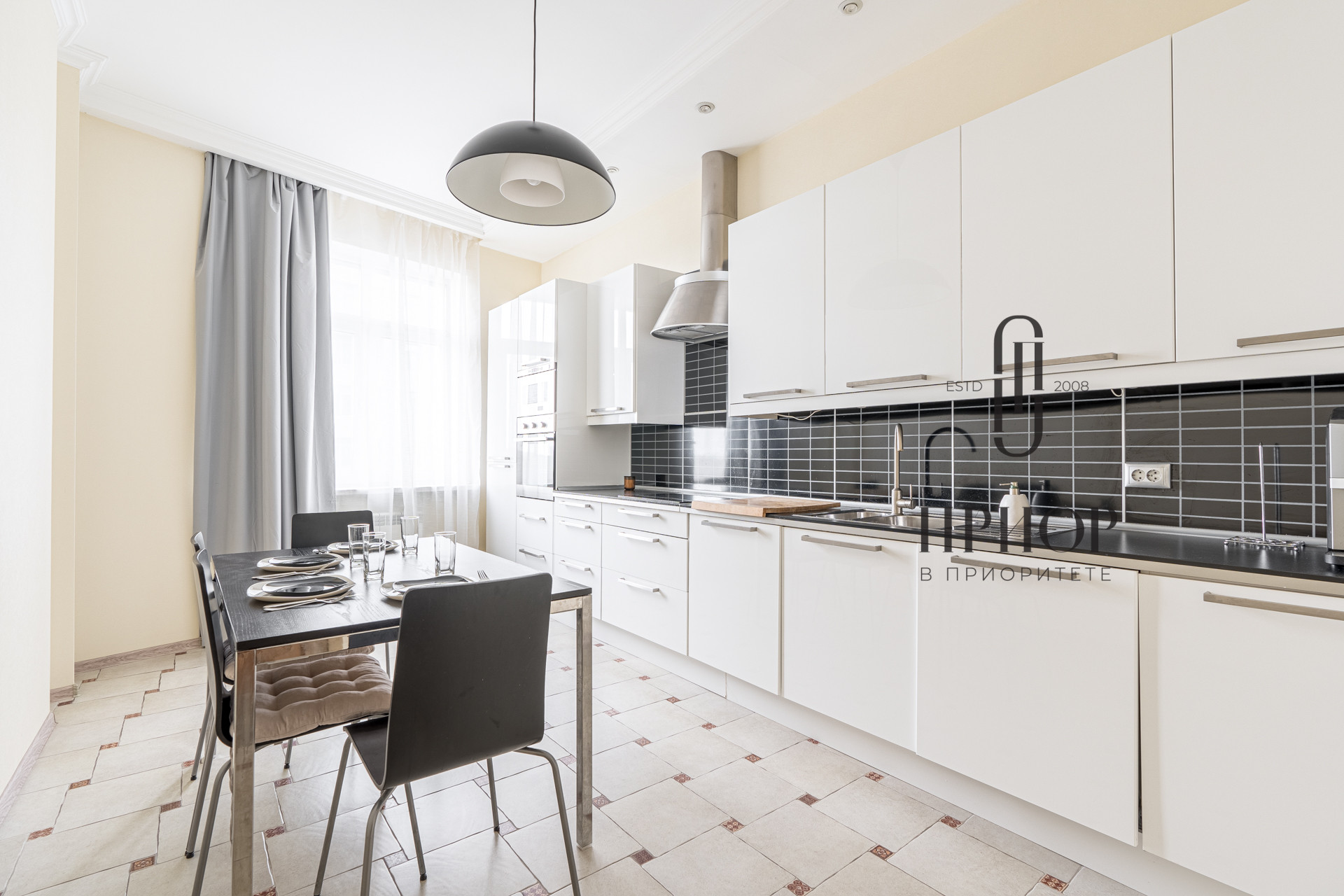просторная кухня, площадью 15,5 кв.м, со встроенной техникой;