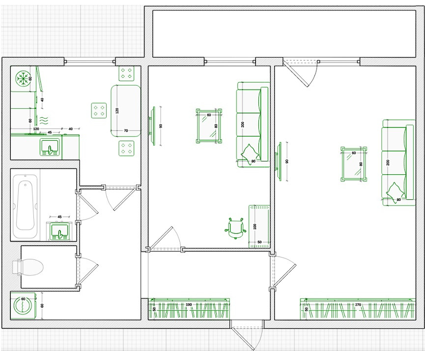 Площадь кухни 7.7 м2