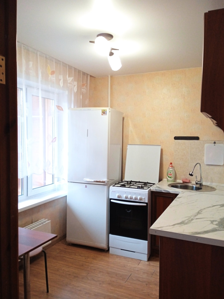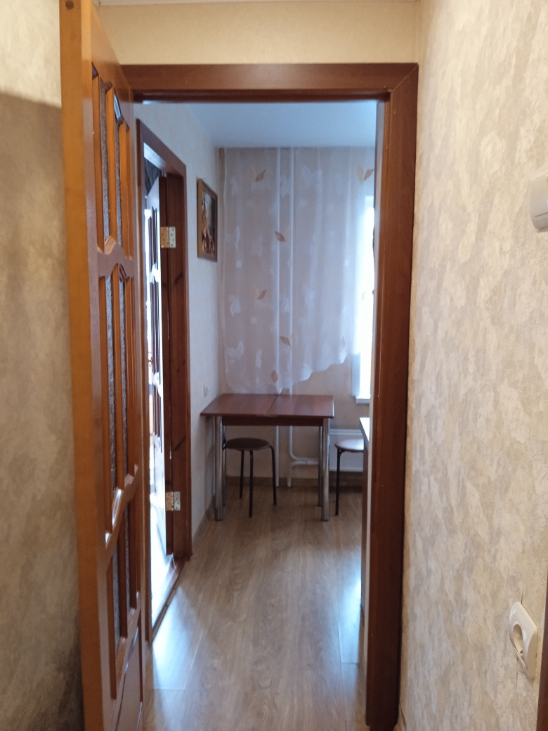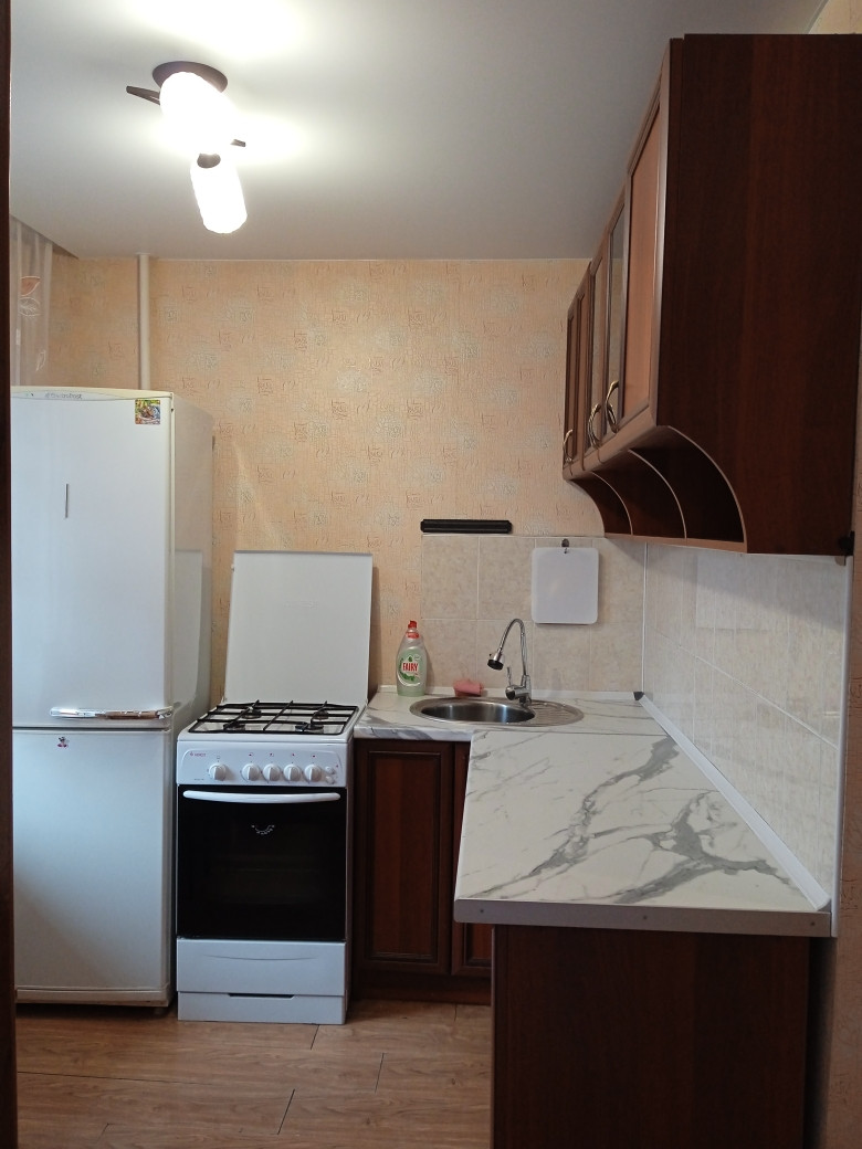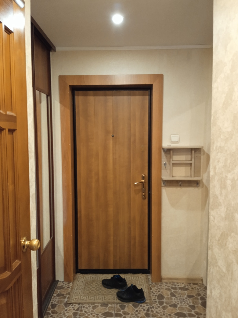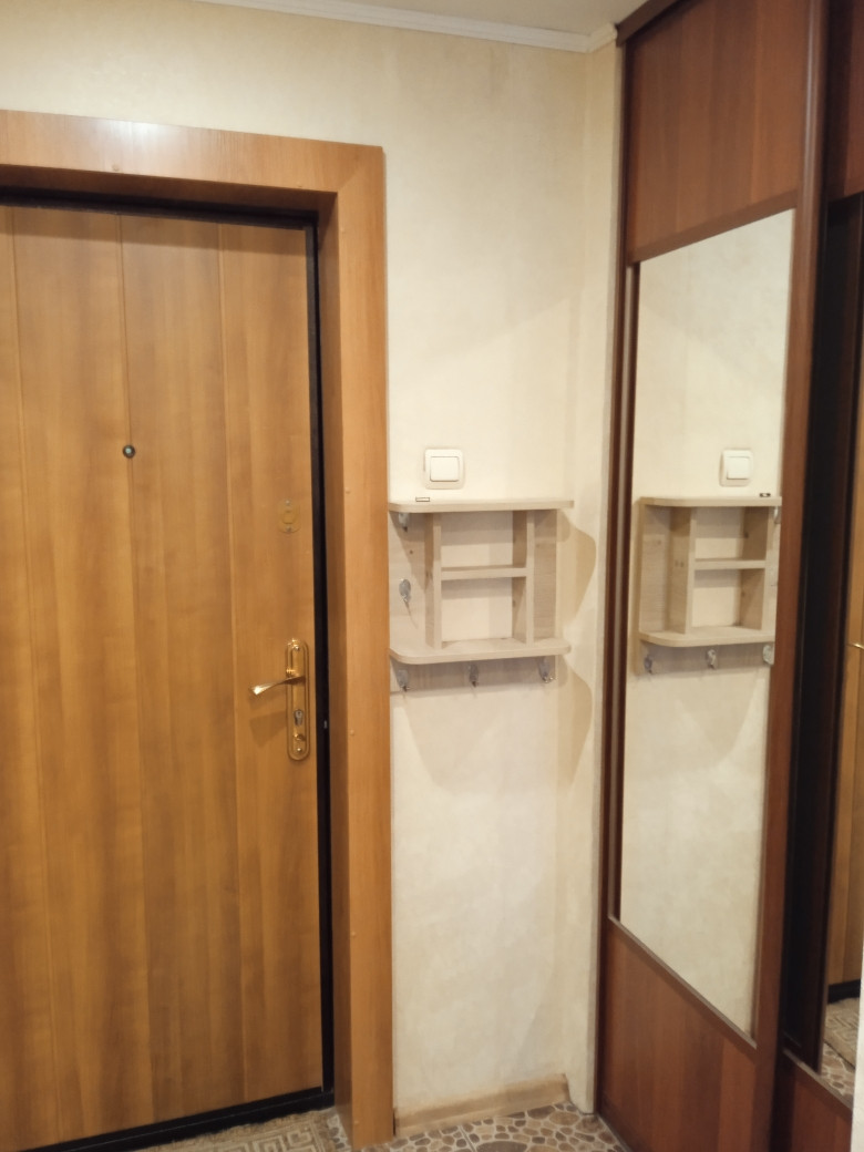 В квартире выполнен косметический ремонт: натяжные потолки, обои в светлых тонах, на полу ламинат, лоджия застеклена и обшита деревом.