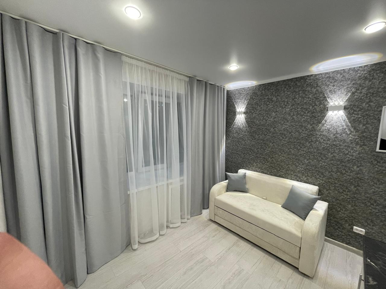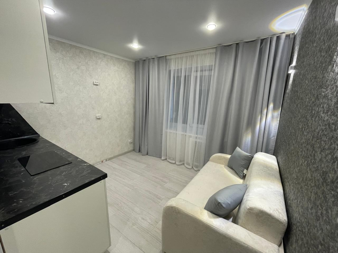 Квартира привлекает внимание своим евроремонтом, который придает ей современный и стильный вид. Жилая площадь составляет также 14 квадратных метров, что создает ощущение простора и комфорта. Санузел совмещен, что является удобным решением для экономии пространства.