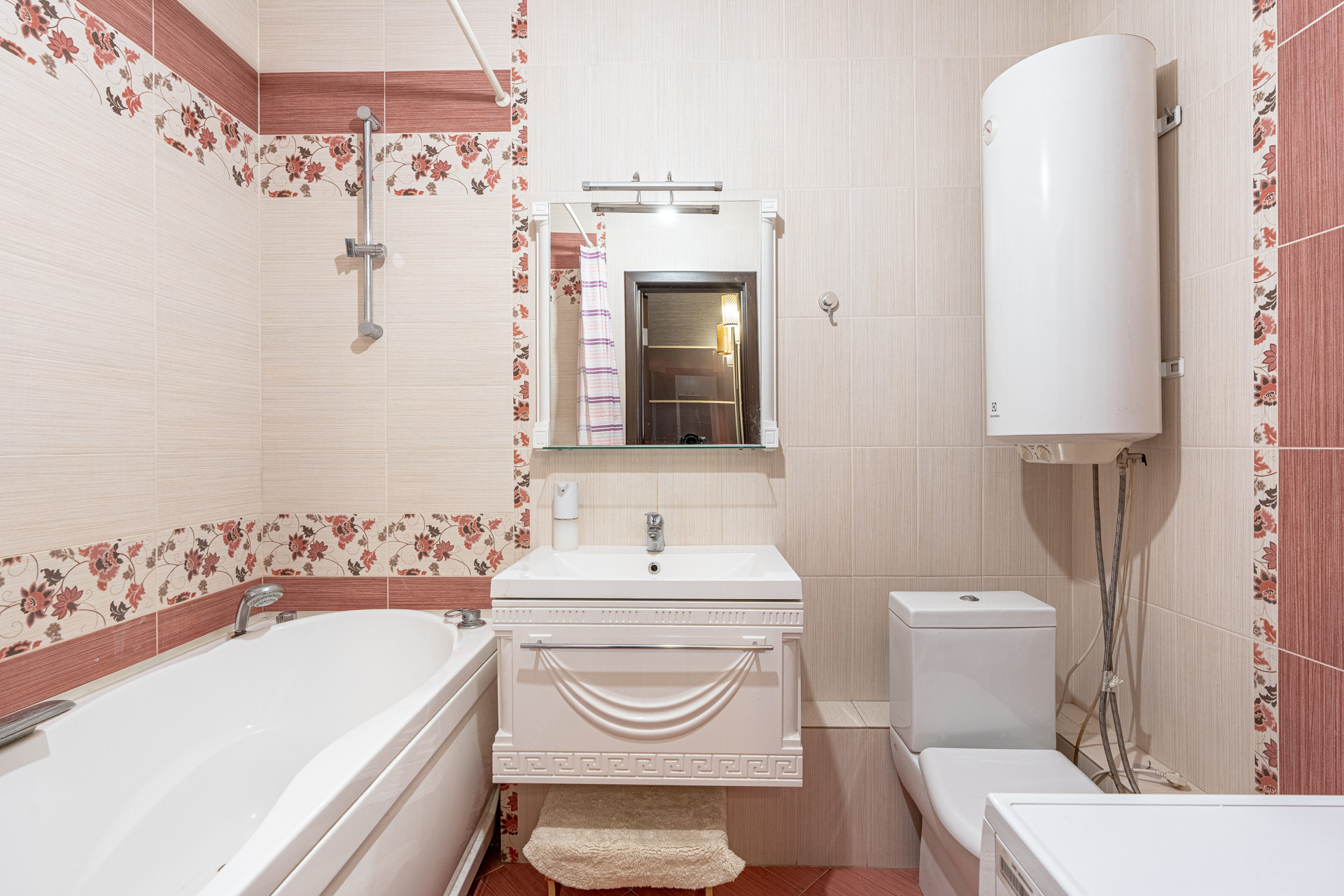 Санузел совмещенный, с установленным водонагревателем.