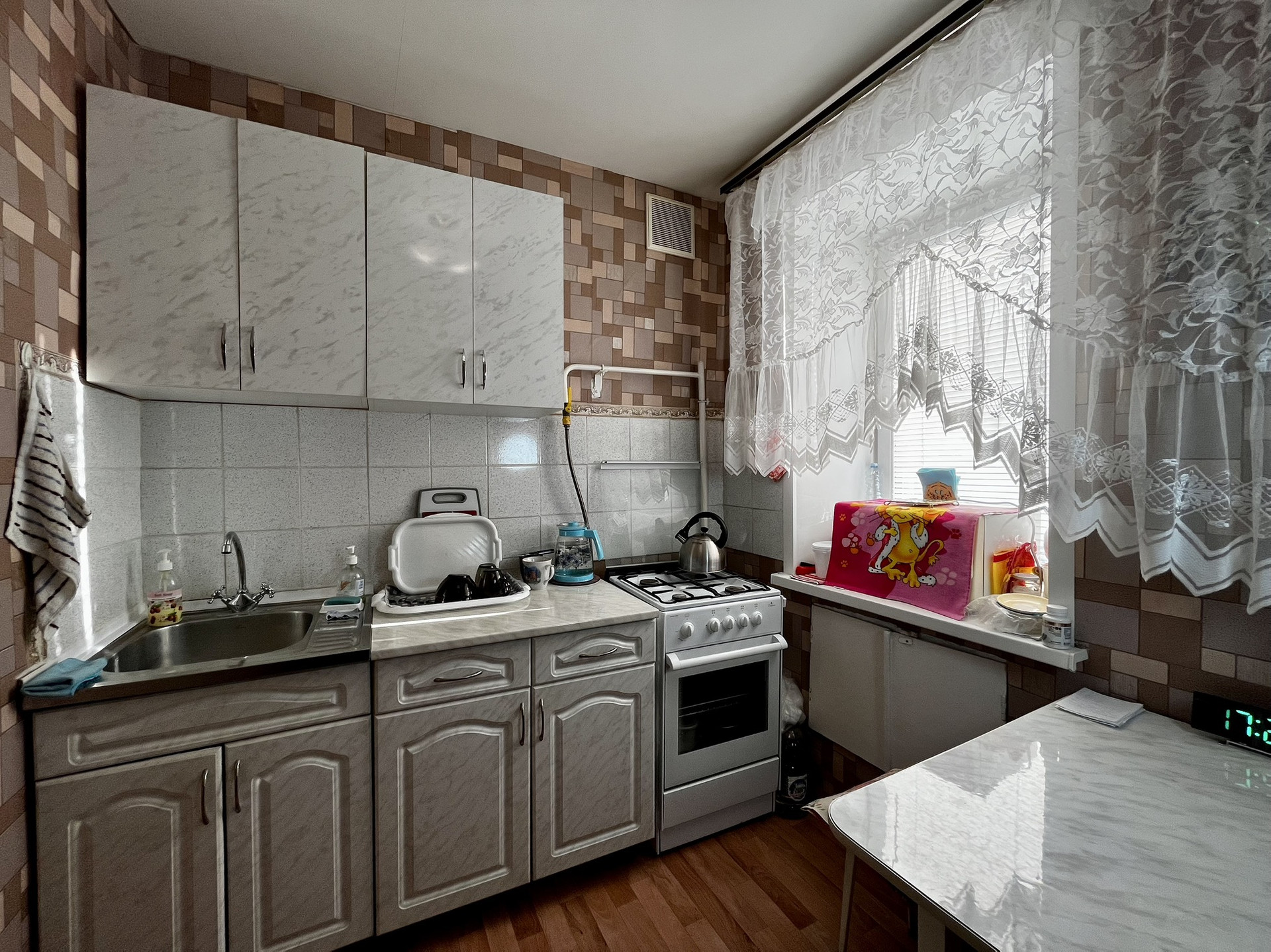В квартире выполнен косметический ремонт, поэтому можно сразу заехать и жить. Высота потолков составляет 2,5 метра. Санузел совмещенный. Окна выходят во двор, поэтому в квартире всегда тихо и спокойно. Есть балкон, где можно наслаждаться закатами солнца.