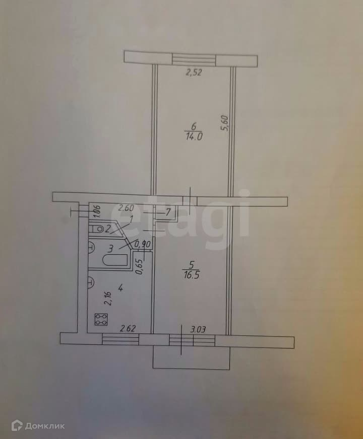 ✅ Кадастровая площадь 44,6 м2;