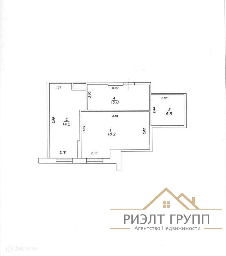 Общей площадью :49.2 кв.м ,кухня 14.5 кв.м