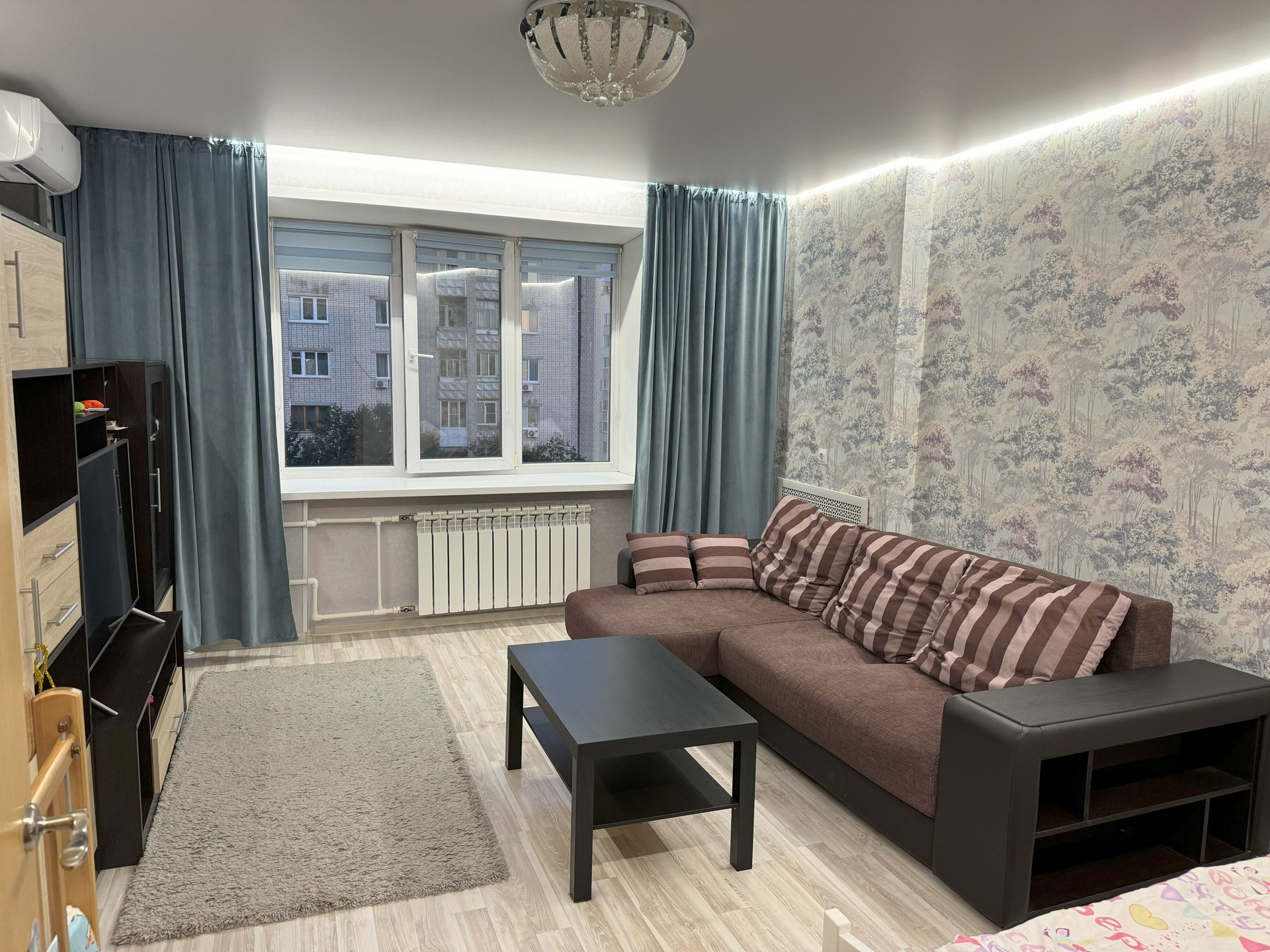 Жилая площадь составляет 17.3 квадратных метров, а кухня занимает 9.1 квадратных метров, что предоставляет достаточно места для комфортного проживания. В квартире выполнен косметический ремонт, благодаря чему она выглядит свежо и аккуратно. Также имеется балкон, где можно насладиться чашкой кофе на свежем воздухе.