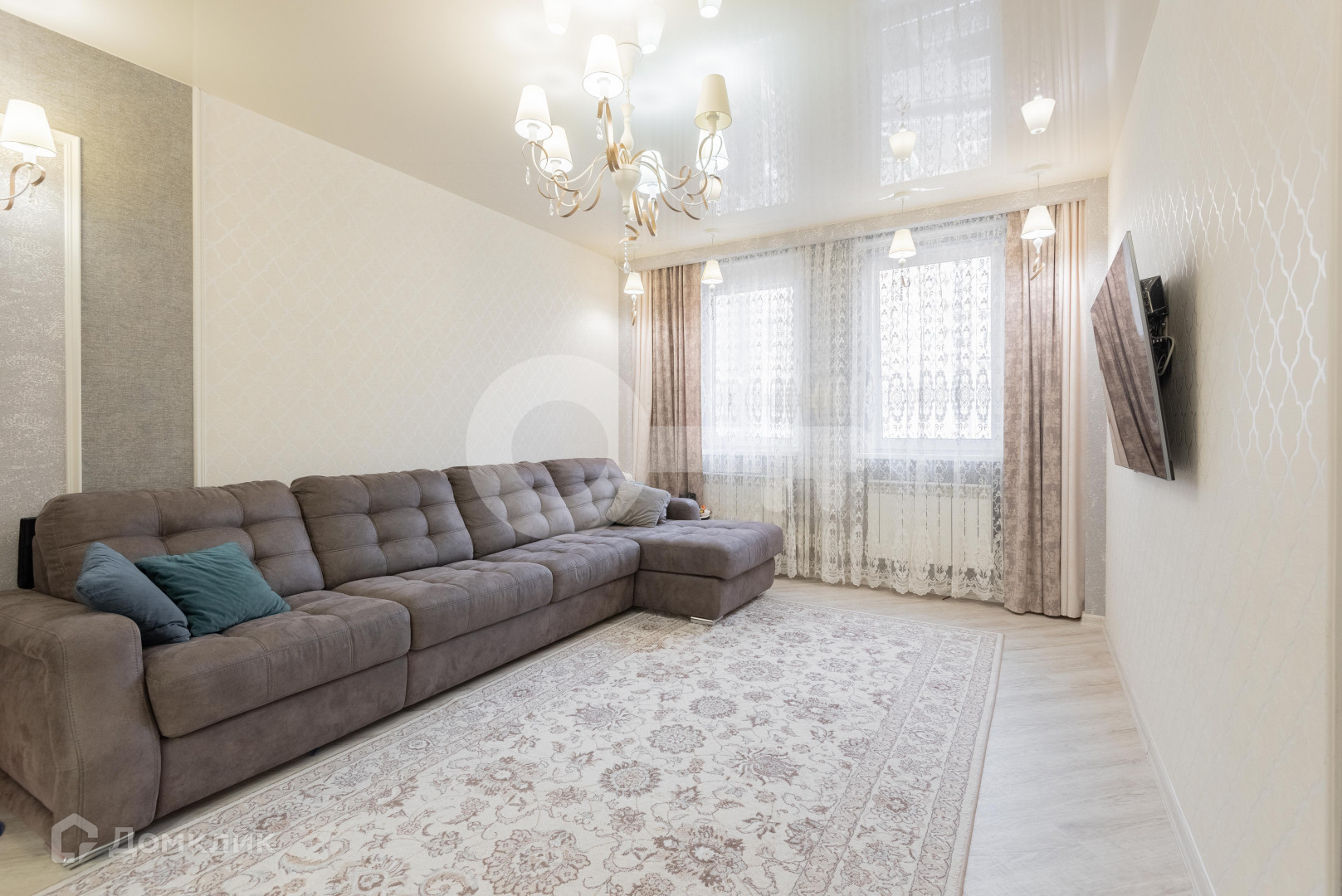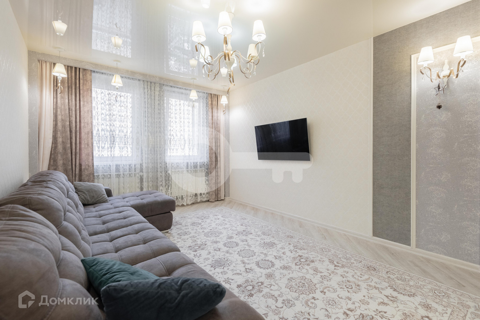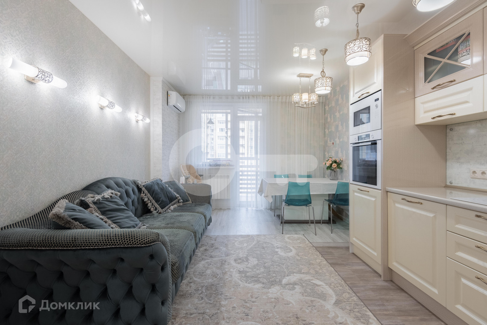 Выполнена дизайнерская отделка с использованием дорогих отделочных материалов. На полу кварц винил, керамогранит, в с/у коллекционная керамическая плитка+ мозаика, установлены кондиционеры, остается вся мебель, бытовая техника, портьеры, люстры и т.д.