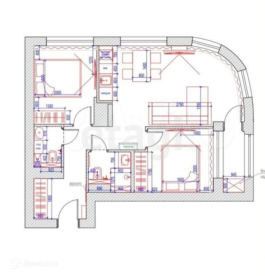 Новый стильный дизайнерский ремонт, удобная планировка с двумя санузлами и двумя спальными комнатами и просторной кухней-гостиной, а также гардеробной комнатной.