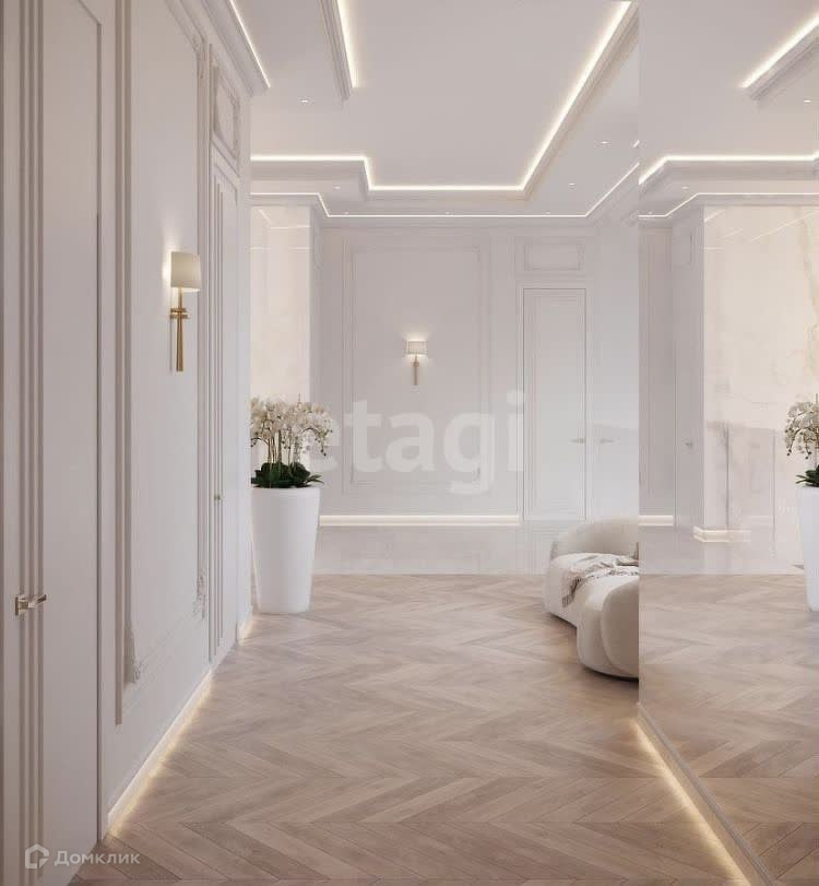 В этой квартире продумано до мелочей, теплый пол, несколько сценариев освещения, удобная кухня с островом и барными стульями.