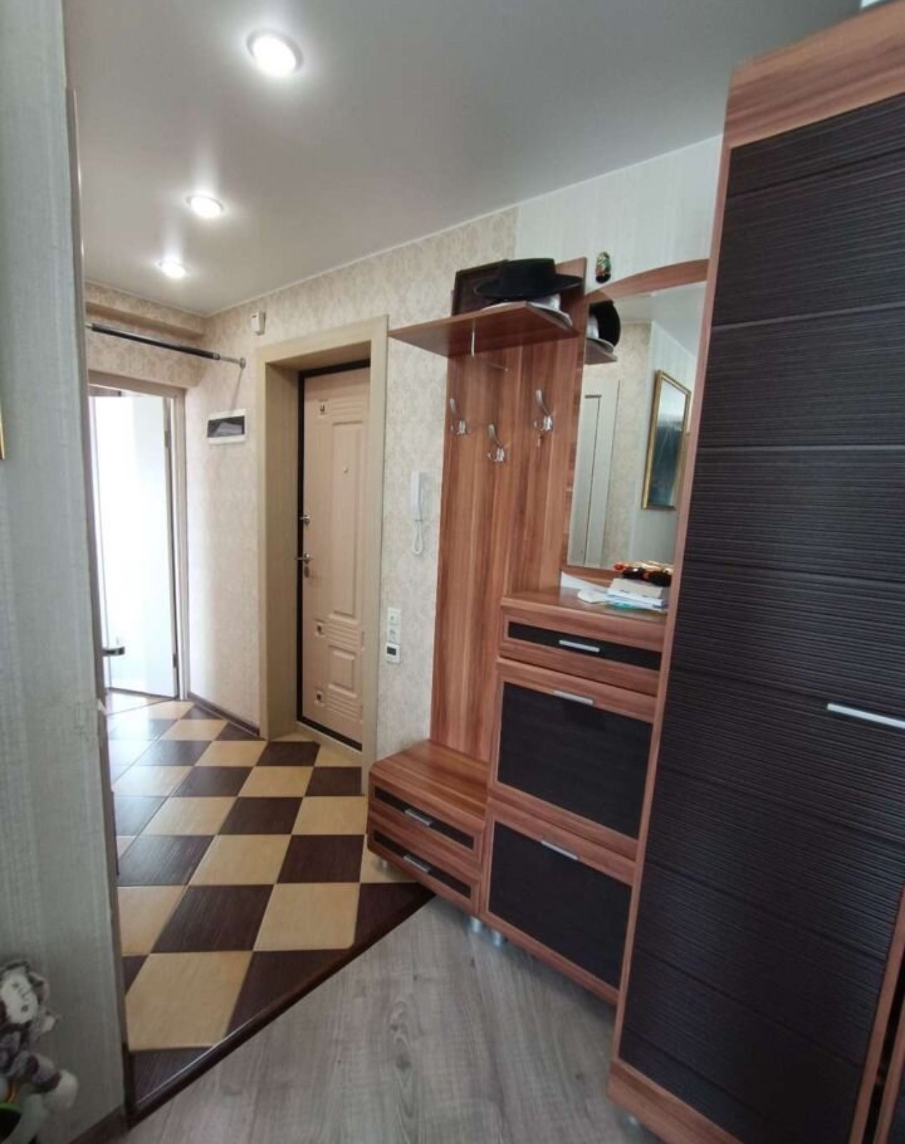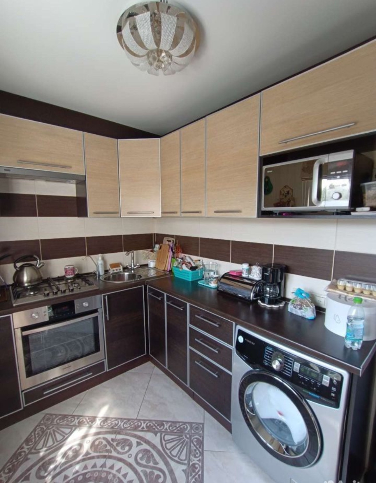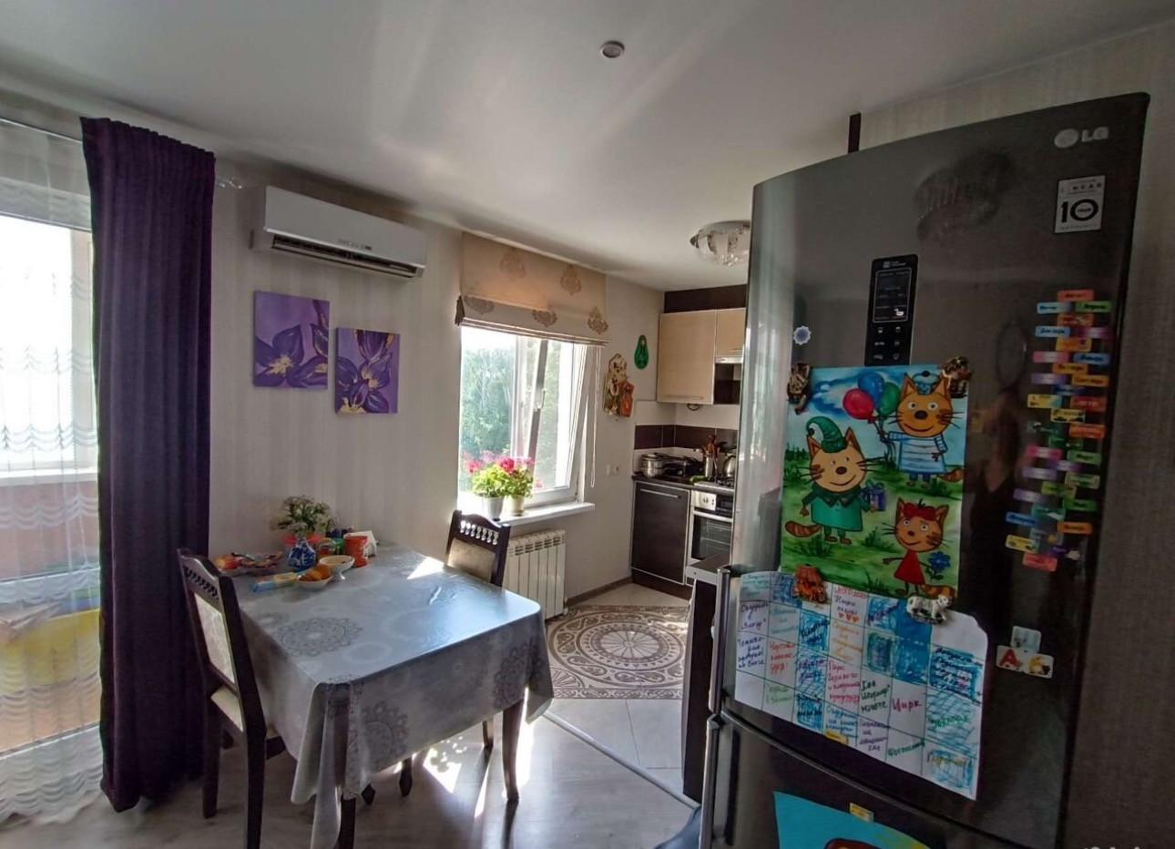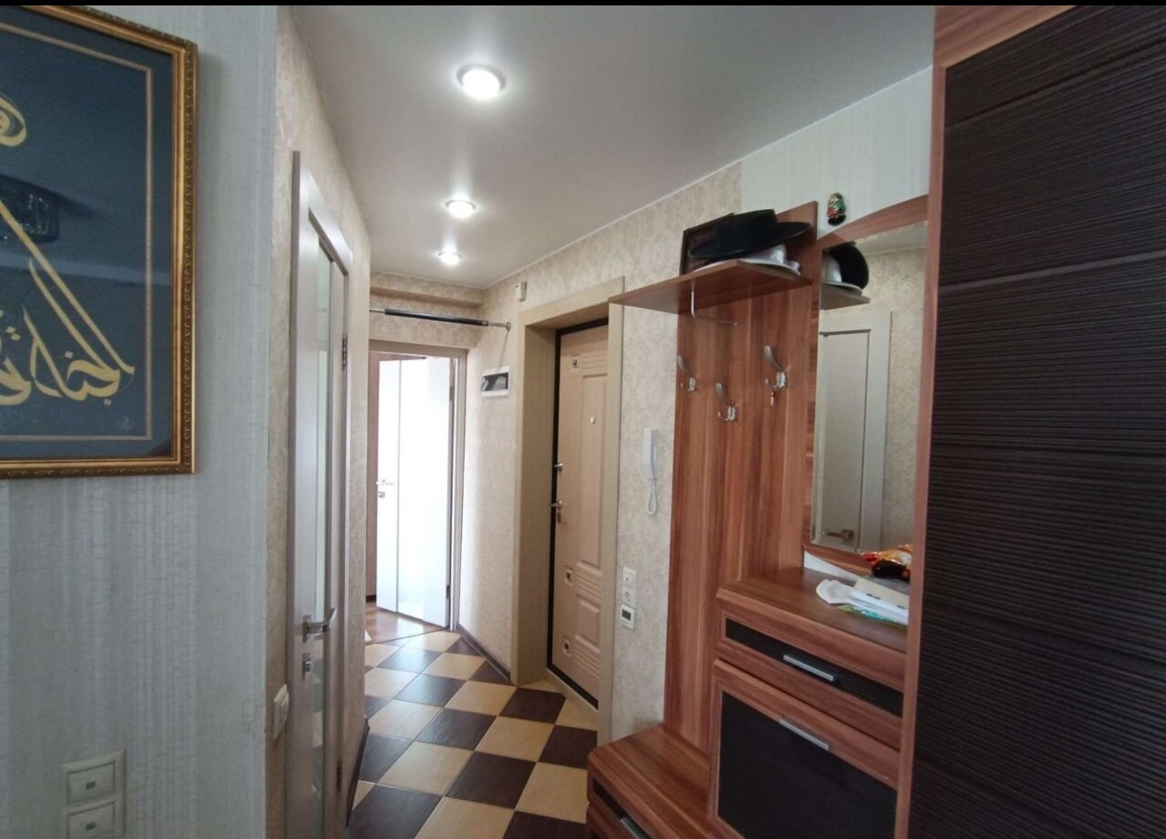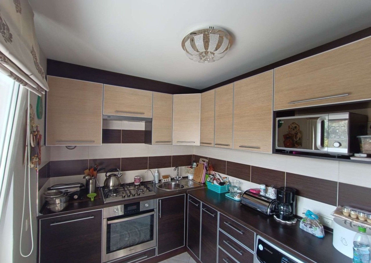Покупалась для семьи, делали ремонт для себя. Электрика вся заменена, пол залит и выложен паркетом. В коридоре, ванной, кухне везде плитка. Потолок натяжной. Сделали световые короба, в которых точечные светильники. В каждой комнате люстра. Стены выровнены. Везде стоят фильтры: ванная, кухня! Даже на кране, подходящем к стиральной машине магнитный фильтр. На кухне многоуровневая очистка.