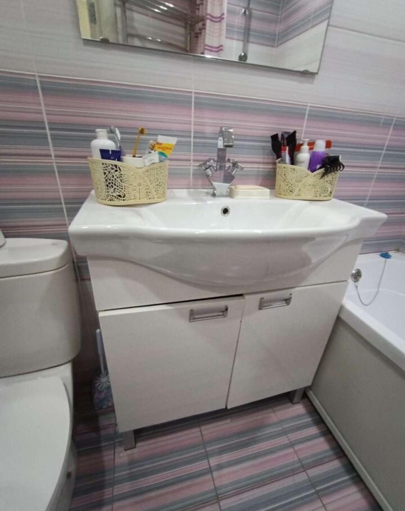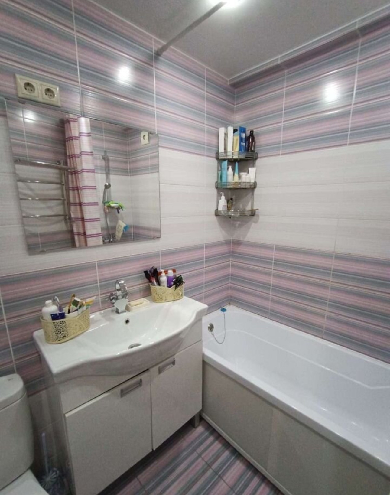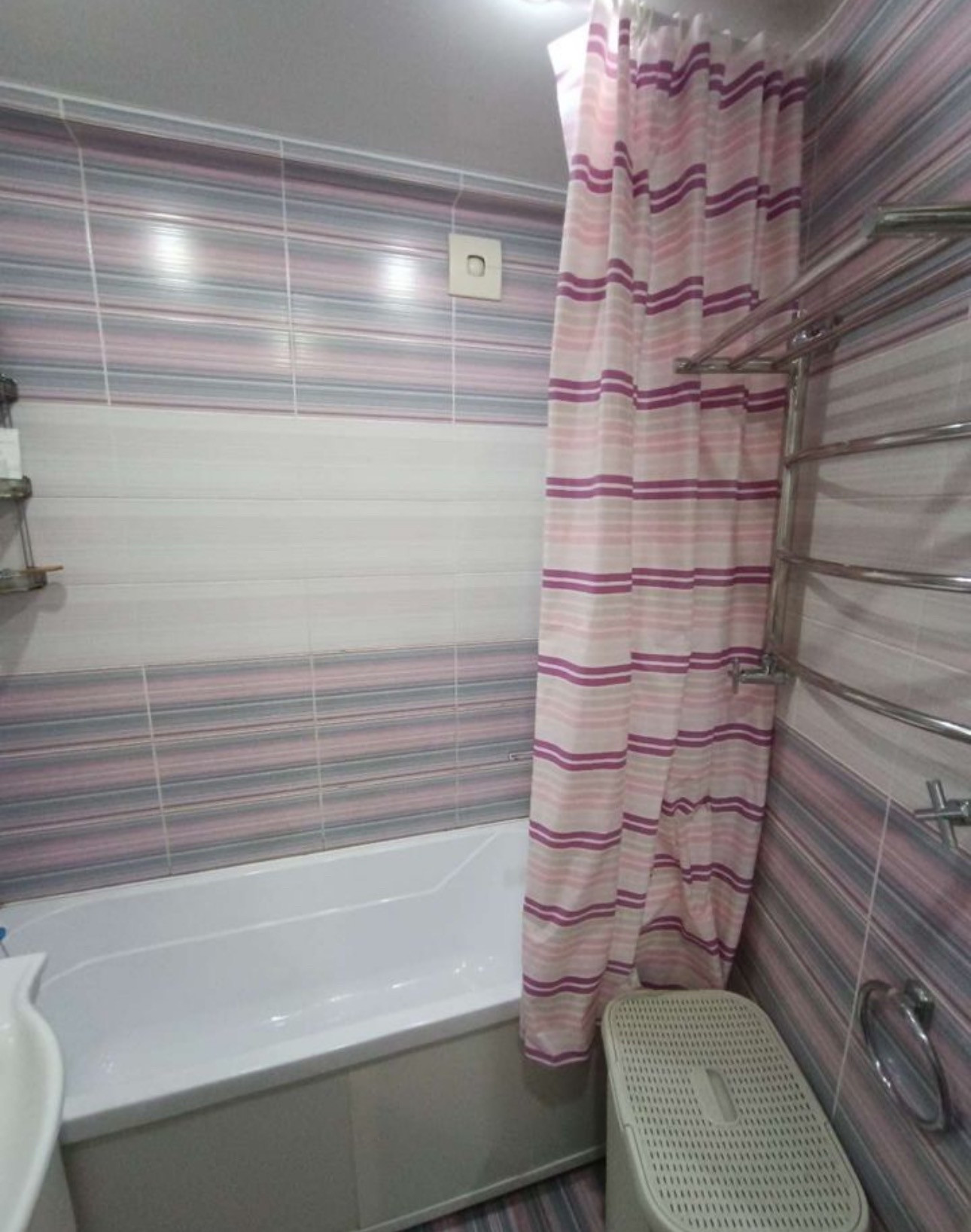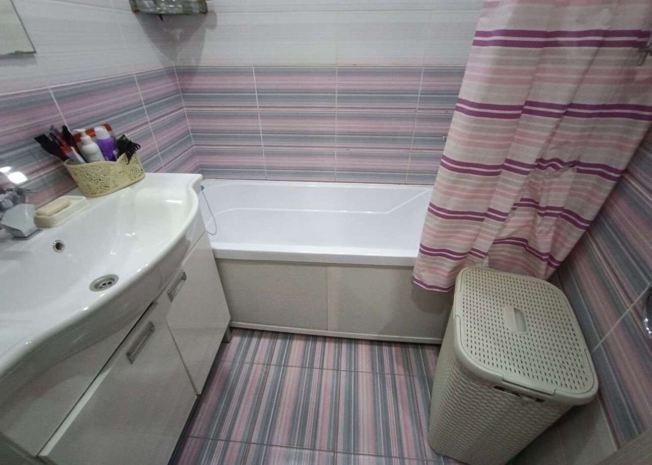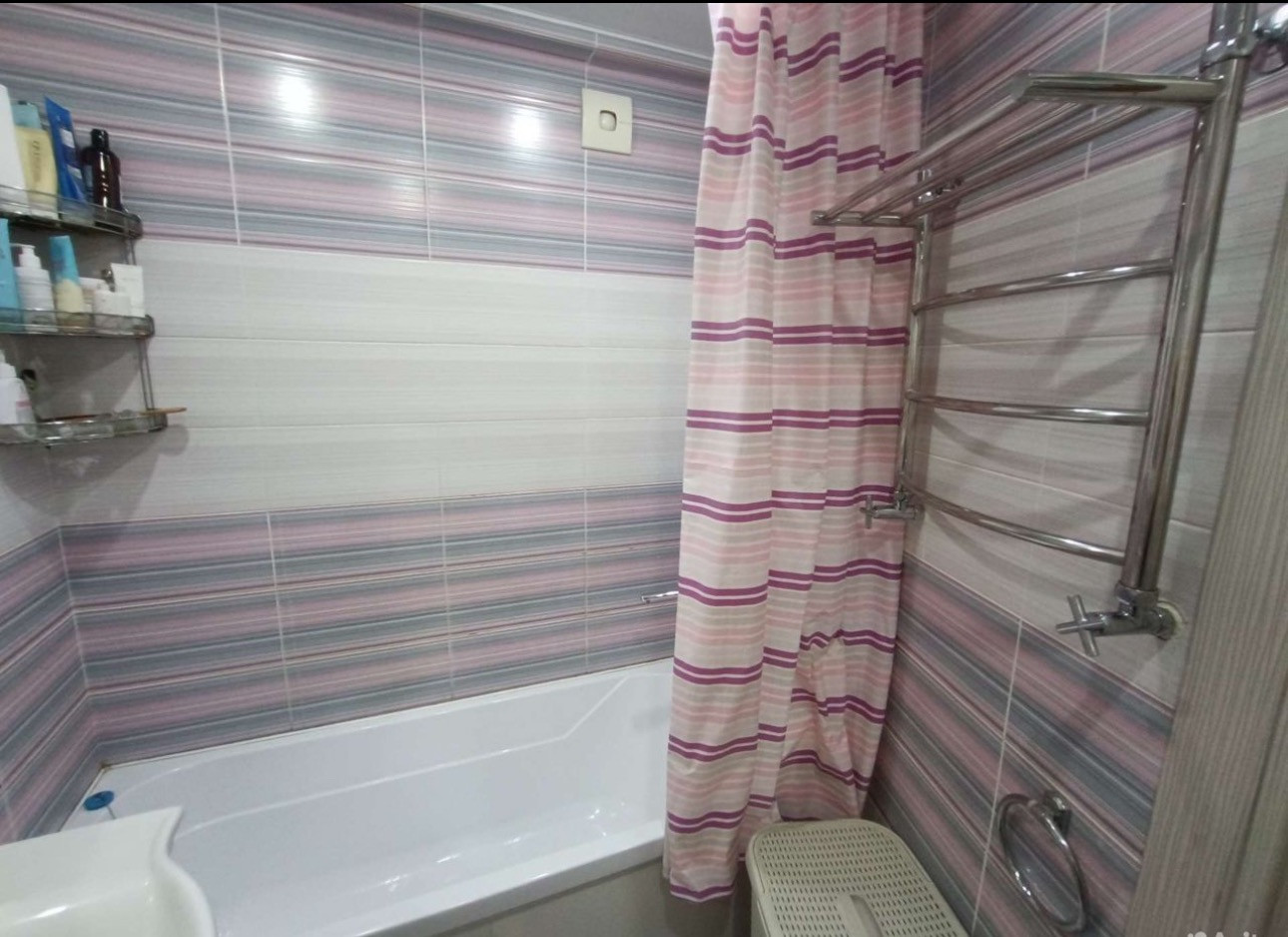 Ванная комната в плитке. Ванная акриловая! Под ванной за экраном можно хранить бытовую химию.