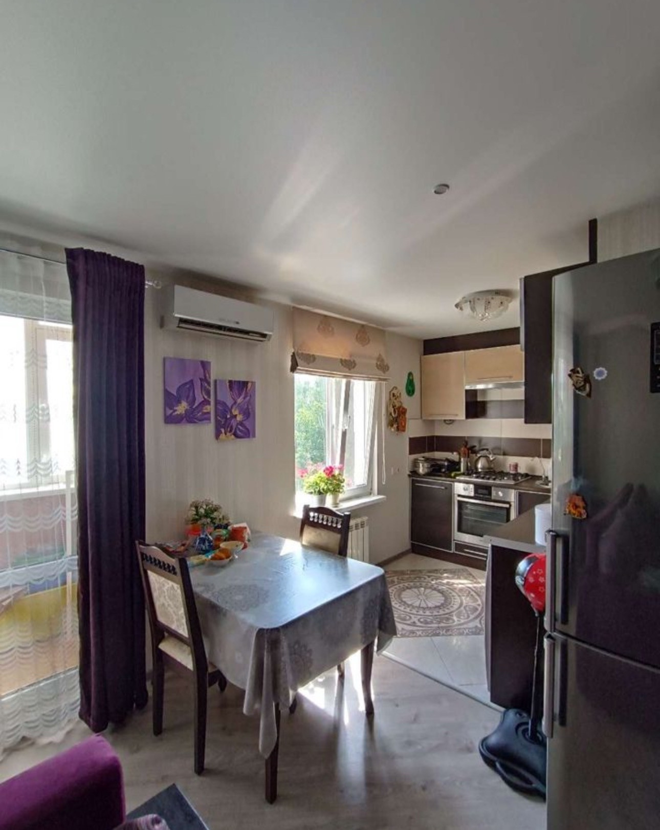 Все окна и балкон-стеклопакет. Из окон не дует. Квартира студия 1+1. Теплый пол в коридоре (быстро сохнет обувь, особенно осенью-зимой с детьми удобно!), ванной комнате и на кухне. То есть теплый пол проходит по центру квартиры. Регулировка из коридора и кухни!