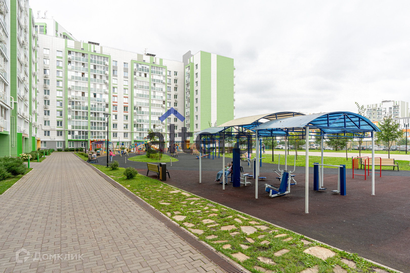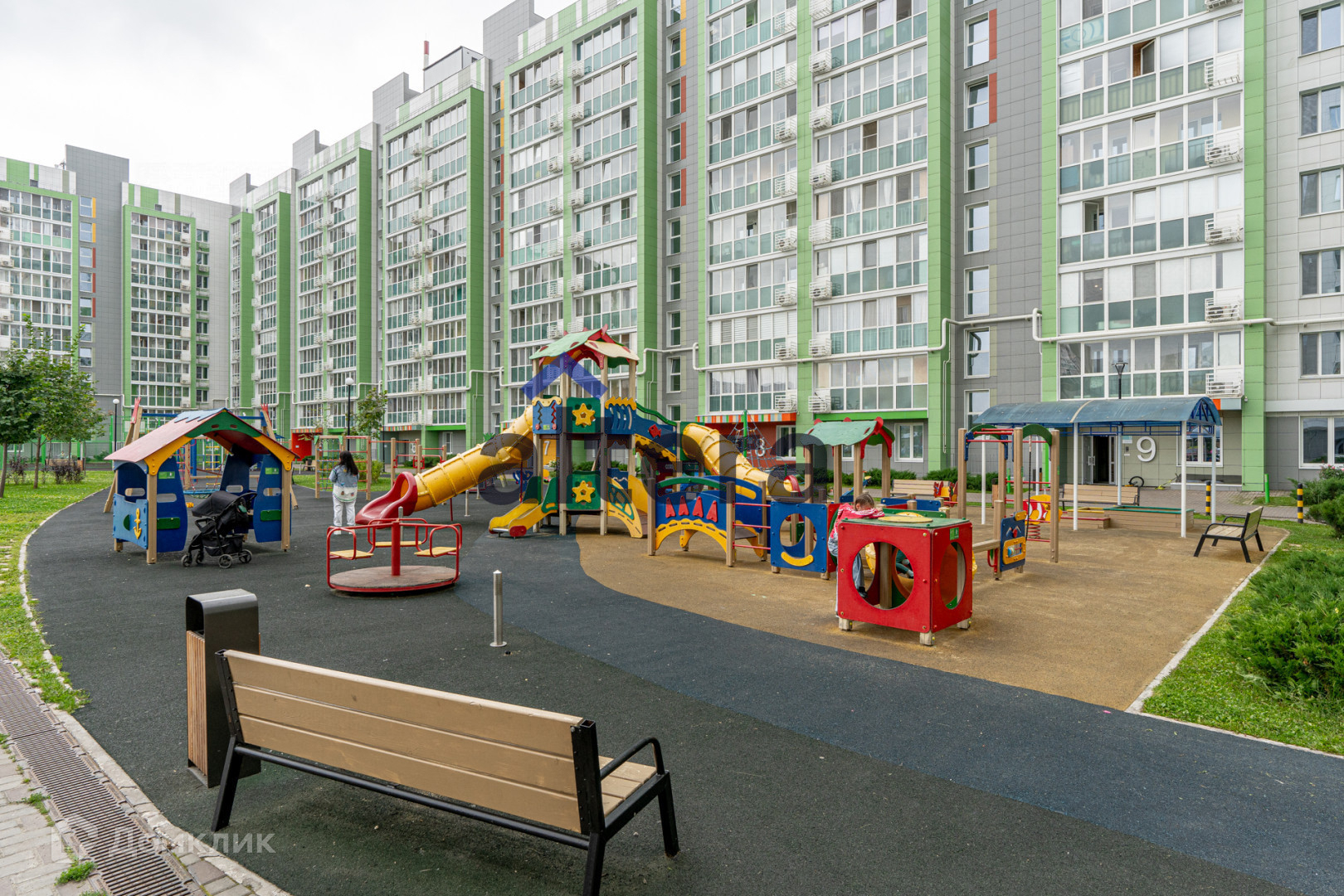 Свободный от машин и доступа посторонних, во дворе многообразие площадок для лдетей и взрослых. Территория охраняется и оборудована видеонаблюдением. Вход осуществляется через систему контроля доступа, только для жителей дома.