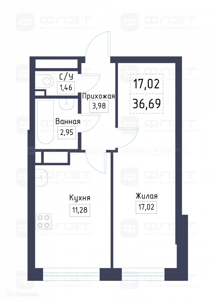 Общая площадь 36.7 м2