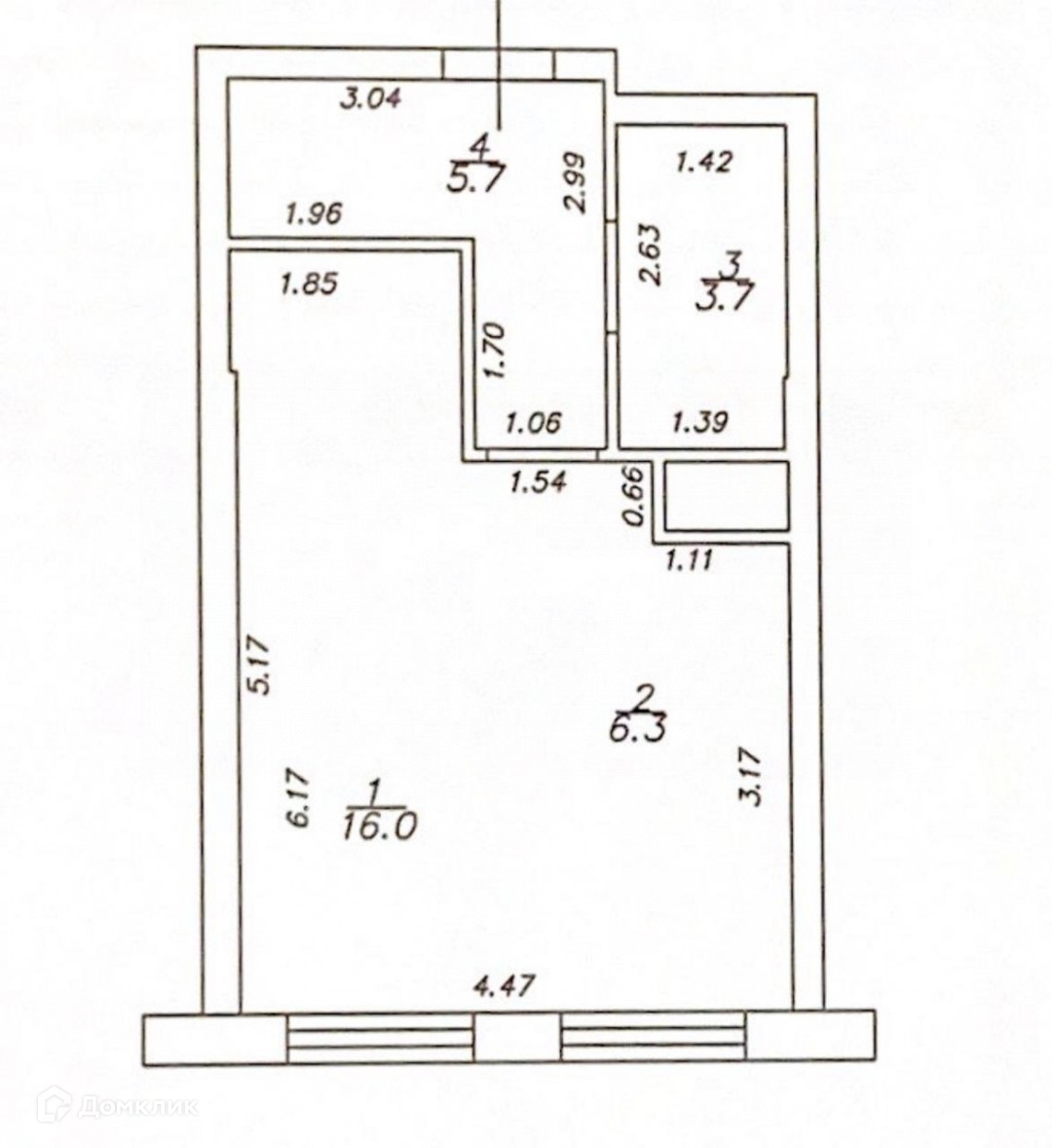 Общая площадь 31.7 м2