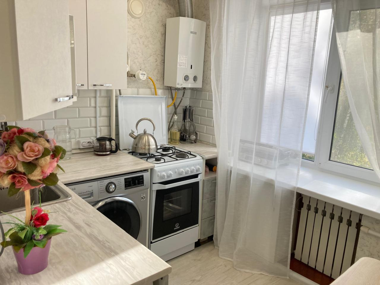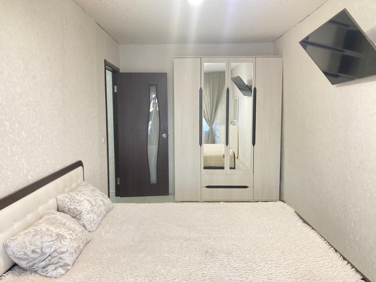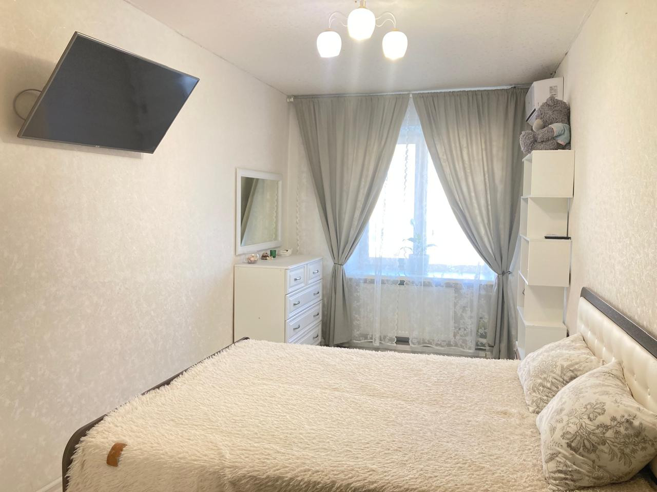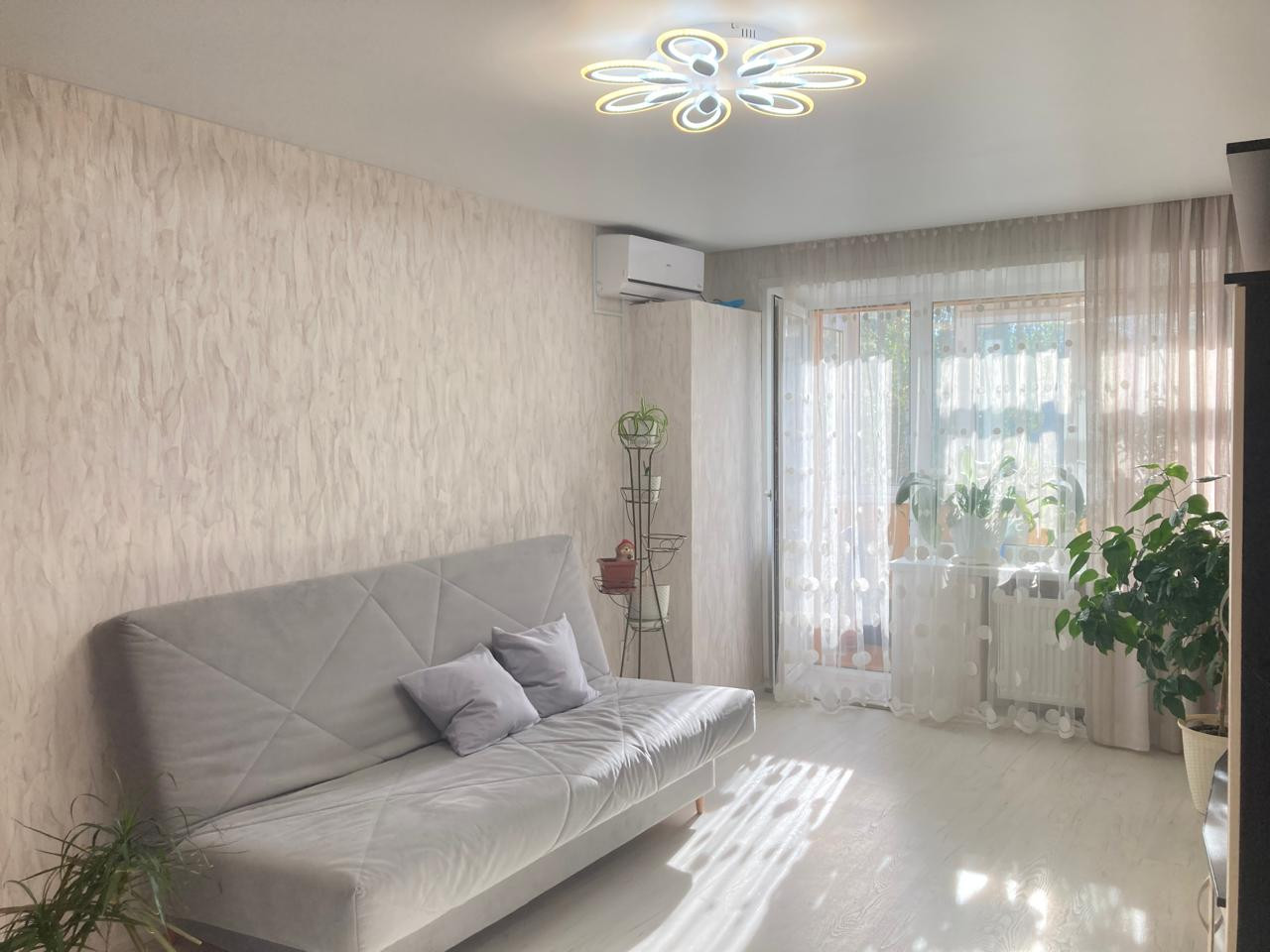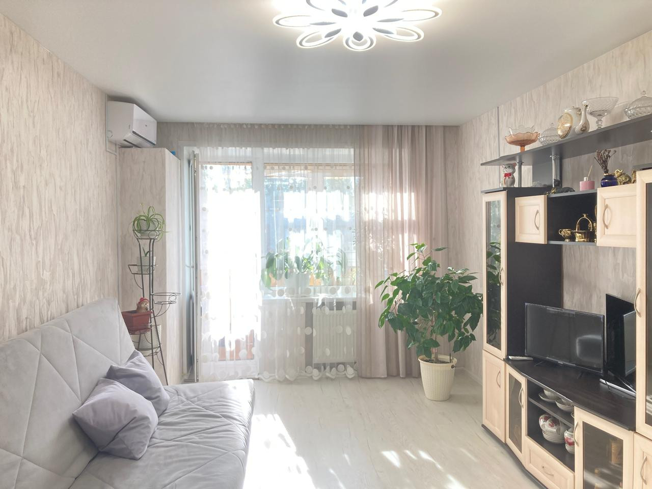 Остаются кухонный гарнитур, кондиционер, шкаф-купе.