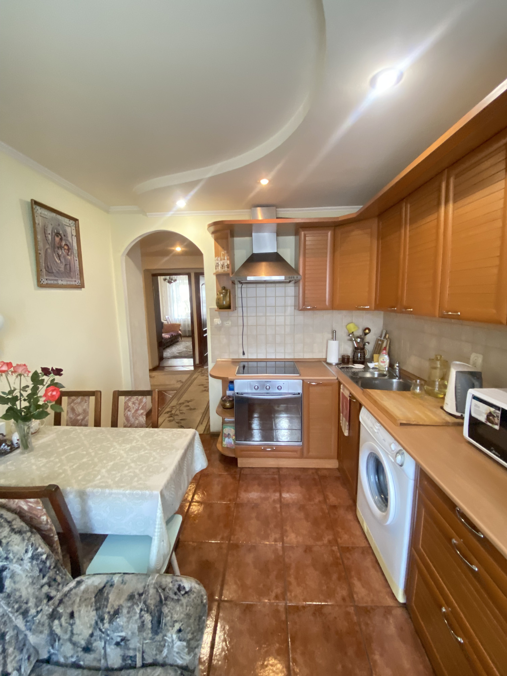 Общая площадь квартиры составляет 66 кв.м. Отличная планировка, квартира распашонка (окна выходят на обе стороны дома). Три раздельные комнаты, площадью 16/13/11.2 кв.м. Кухня площадью 9 кв.м. Санузел раздельный, в кафеле. Имеется застекленная, обшитая лоджия с выходом из зала. Квартира с хорошим ремонтом. Чистая, светлая и уютная.