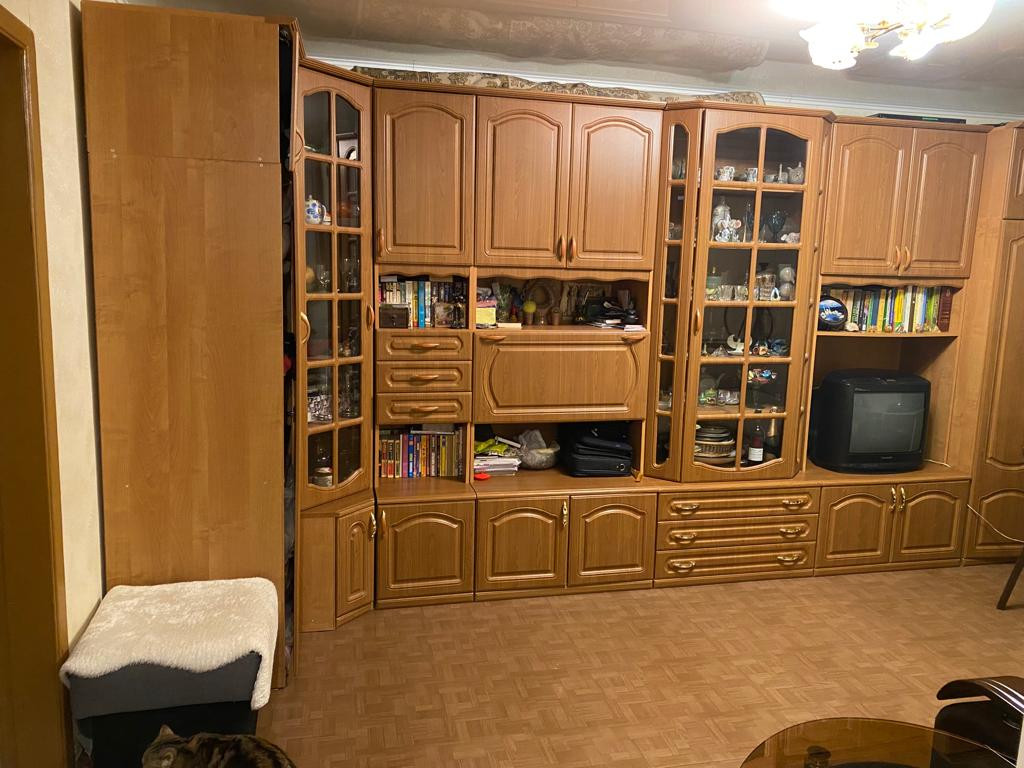 Остается кухонный гарнитур, плита, частично мебель.