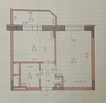 - совмещенный санузел 3,8 м2.