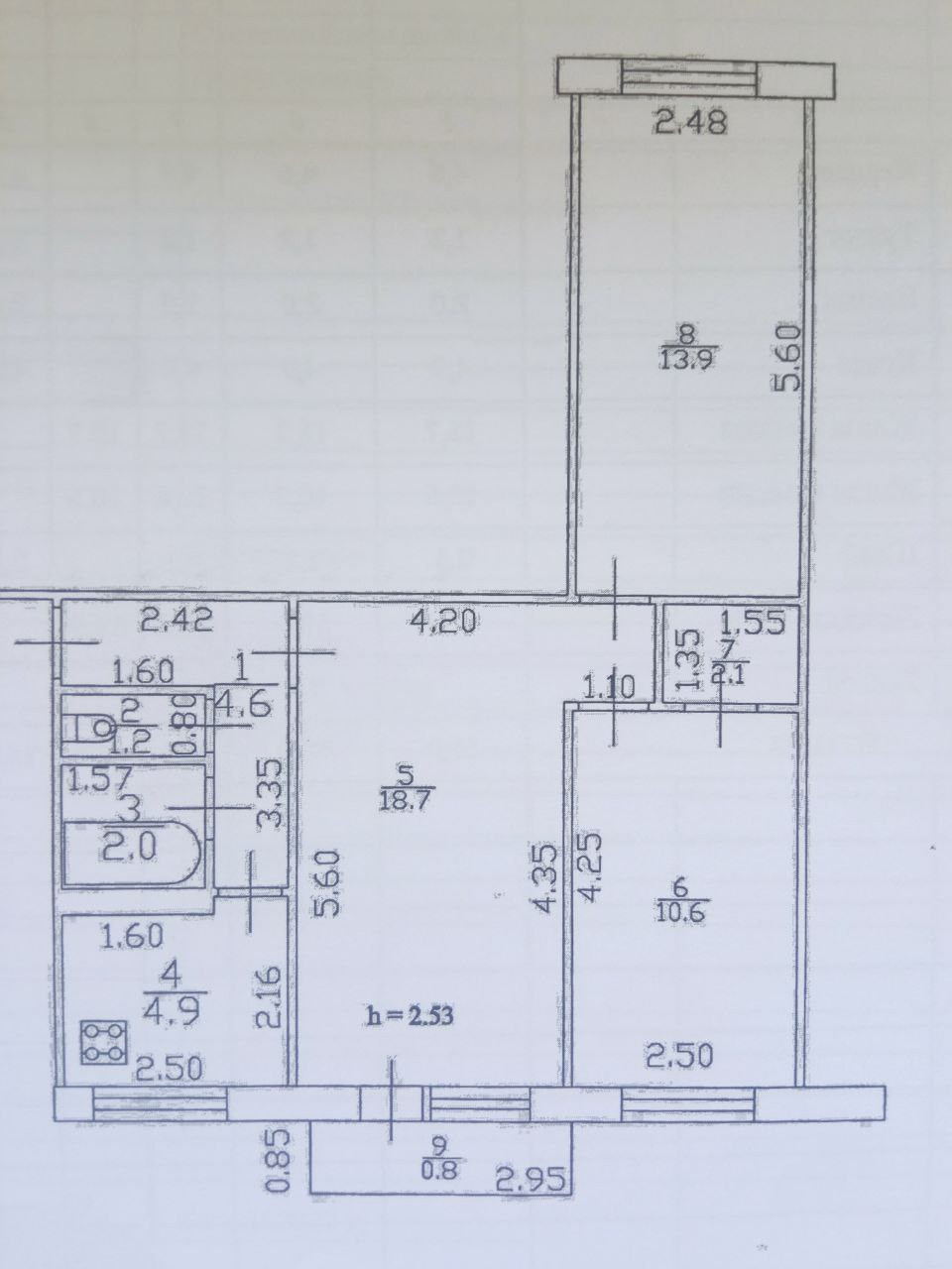 Площадь 3х комнат 18,7/13,9/10,6 кв.м, окна в разные стороны.