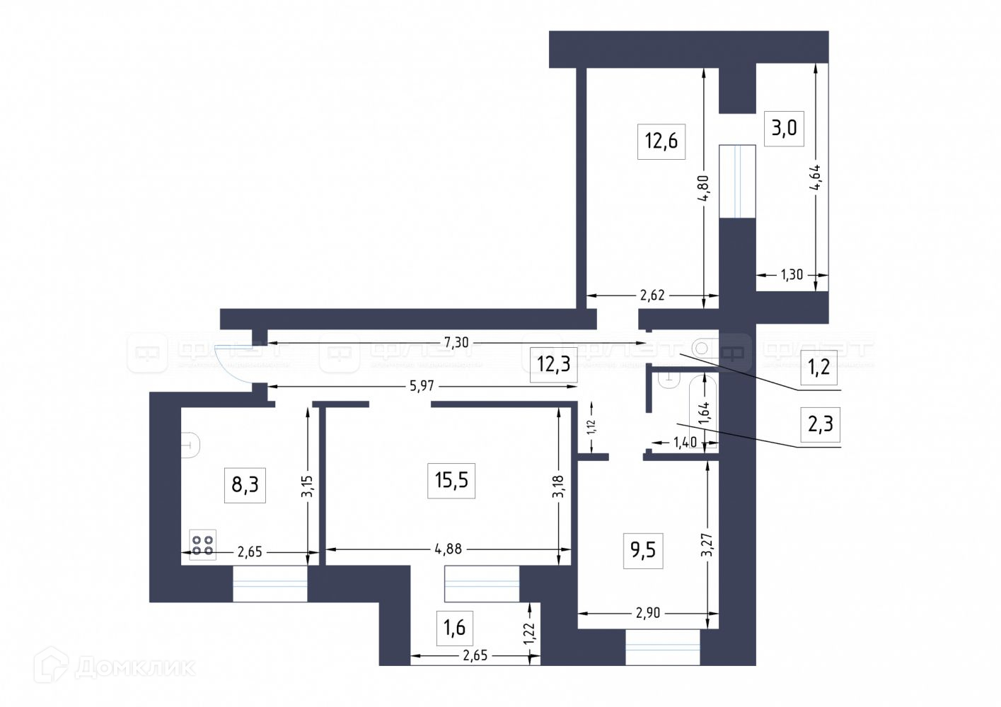 Общая площадь 62 м2