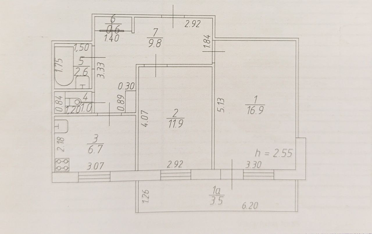 Площадь кухни 6.7 м2