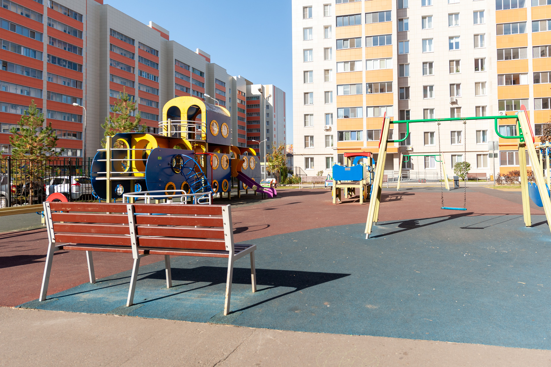 Действительно закрытая территория, детские площадки.