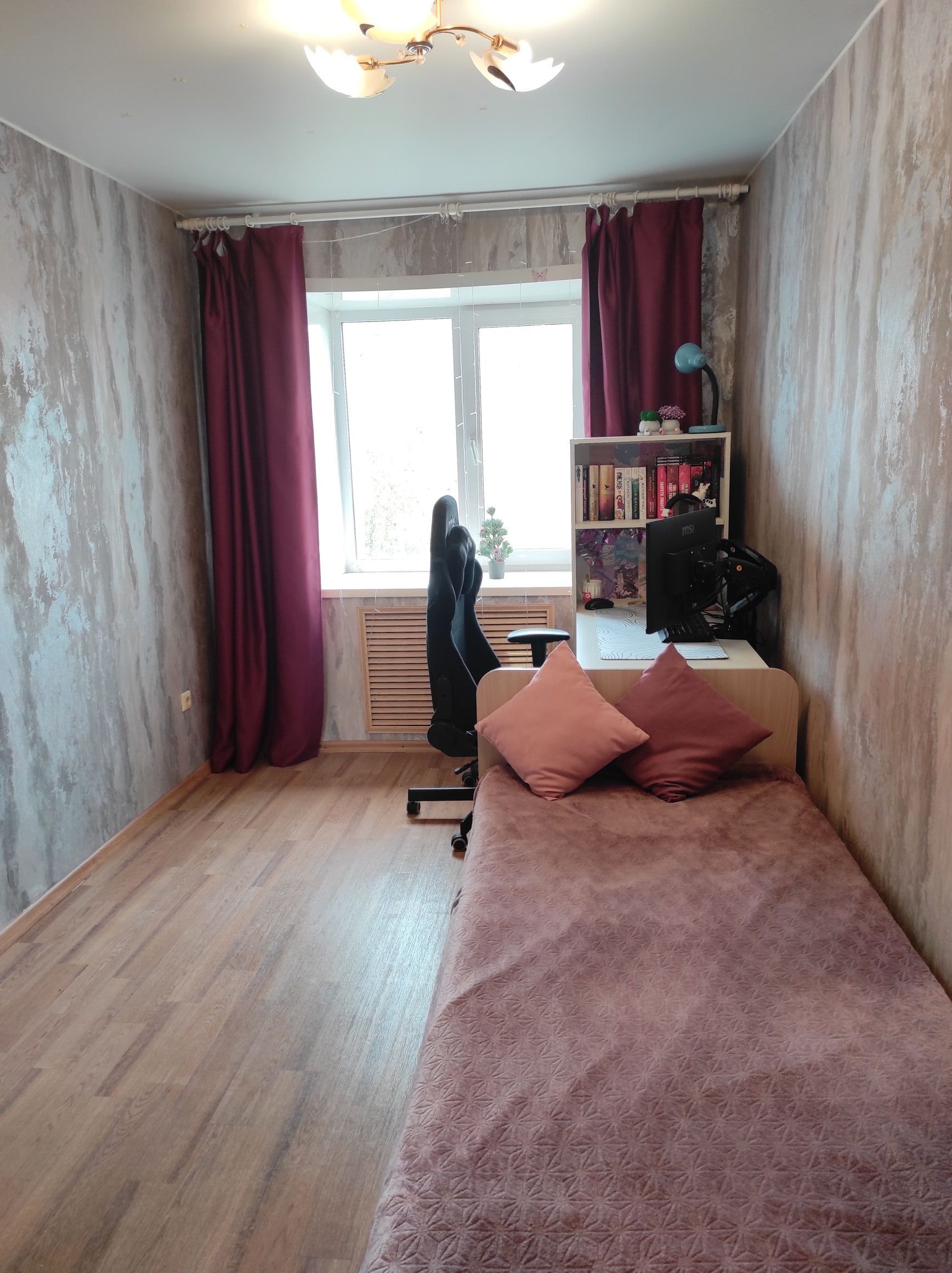 Площадь: общая 59 / жилая 45,1 / кухня 5,6 / сан узел 3 / коридор 4,3 кв.м., имеется балкон остеклен, ремонт косметический, сан узел совмещенный в плитке, зал проходной, 2 темнушки, окна пластиковые.