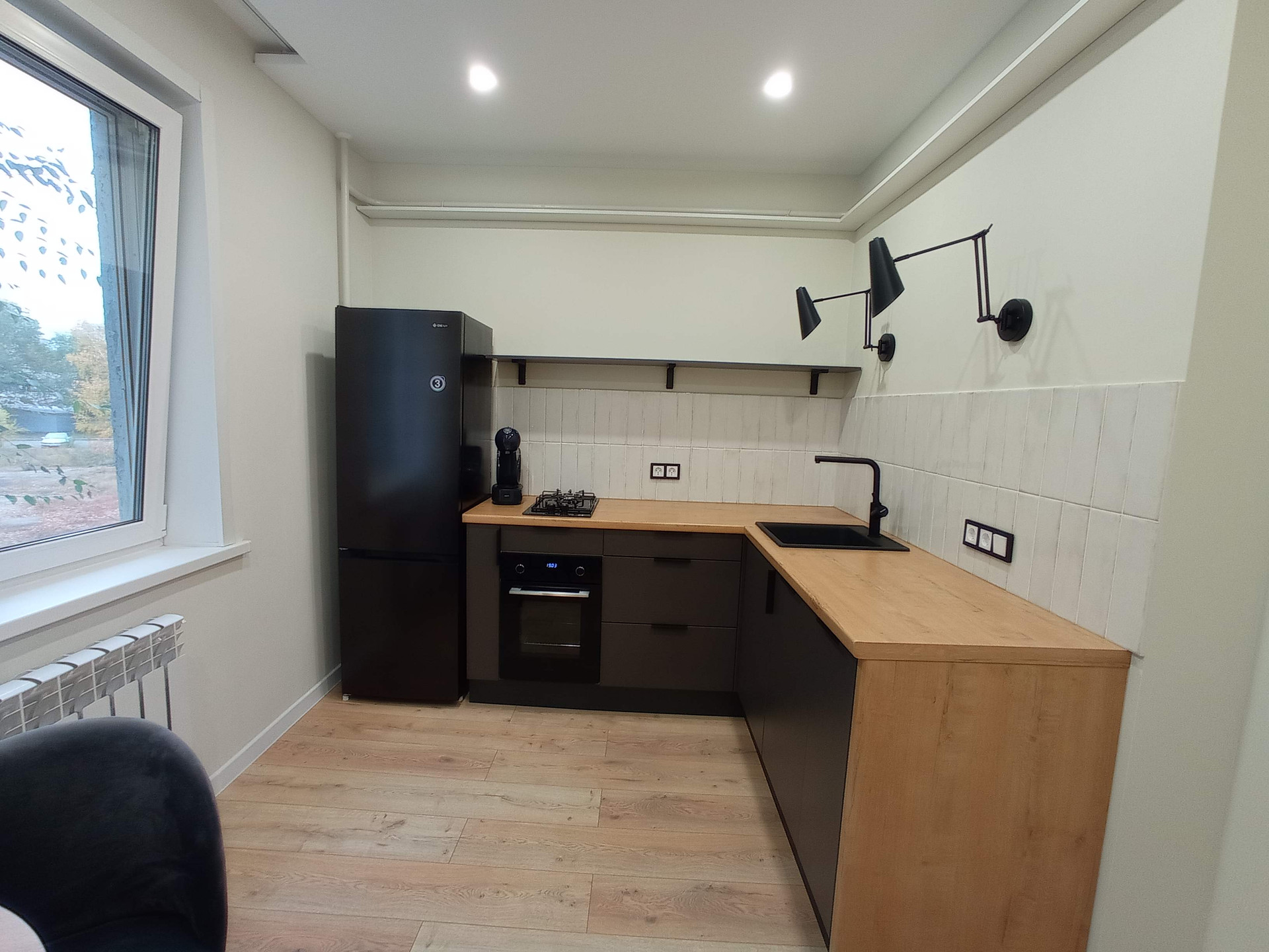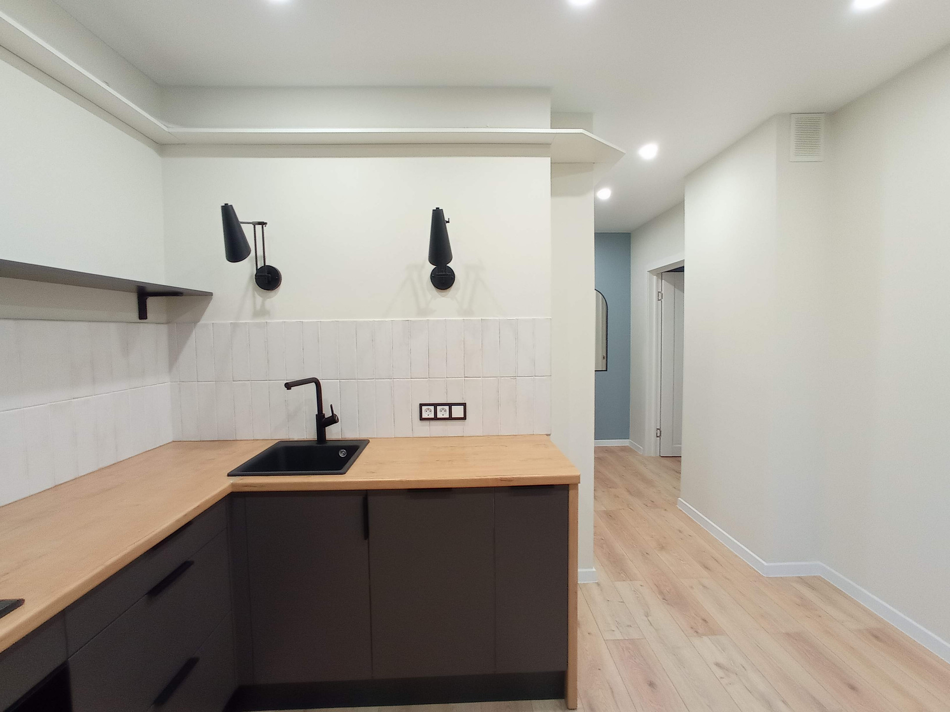 Кухня, гapдepoб, мeбeль в ванной cдeланы пoд закaз.
