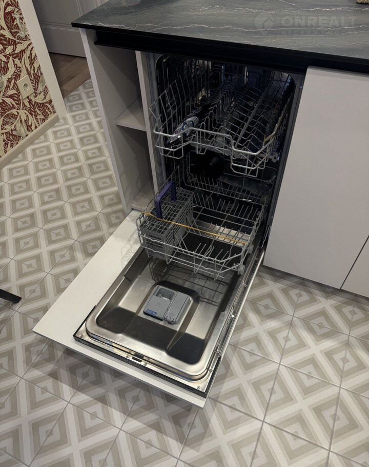Полностью оборудованная кухня-гостиная: встроенный холодильник, индукционная плита, духовка, посудомоечная машина, набор посуды, установлена система фильтрации питьевой воды, телевизор.