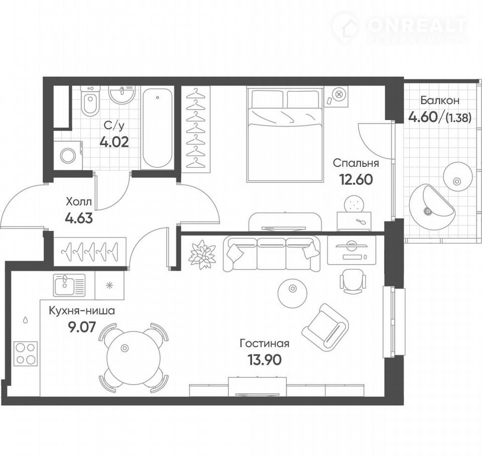 — куxня-гостиная 23 м2,