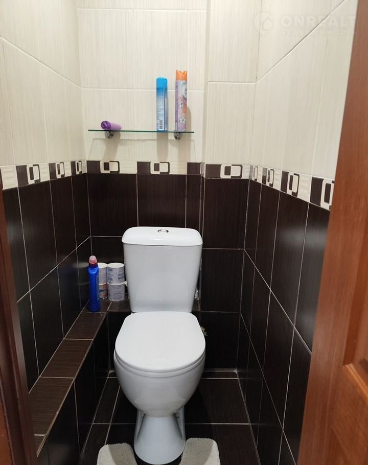 Санузел отделан кафелем, что обеспечивает лёгкость в уборке и долговечность