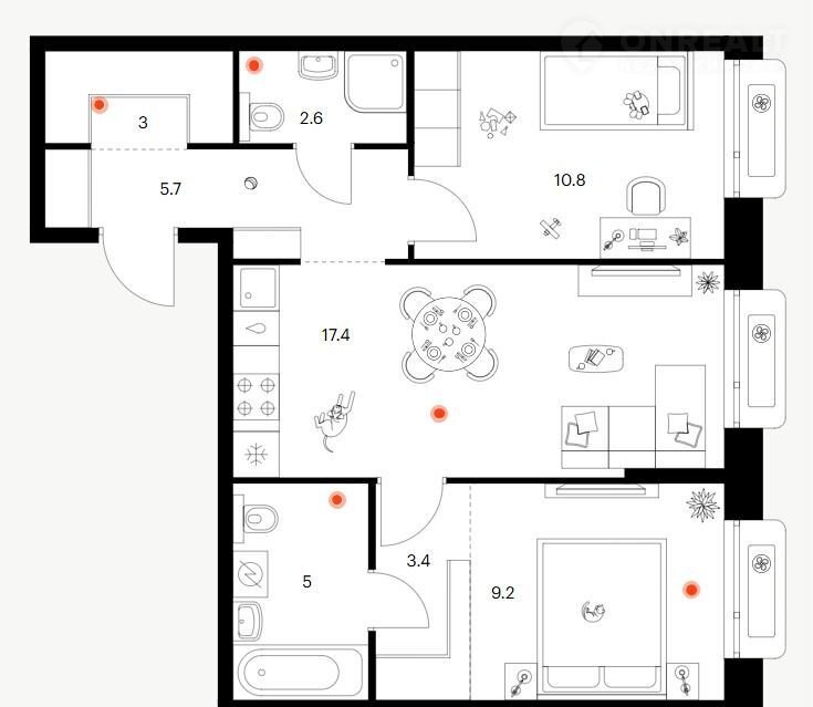 Общая площадь 57 м2