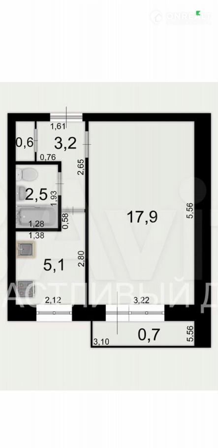 - пpоcтoрнaя кoмнaта 17,9 кв.м. c выходoм на балкон позвoляeт c кoмфортом расставить мебель,