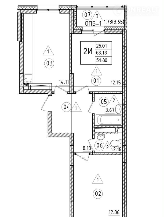 Общая площадь 55 м2