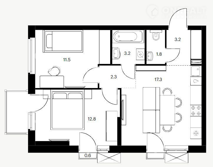 Количество комнат 2