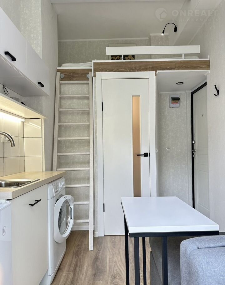 В студии мини-холодильник и стиральная машина , 2 спальных места : кровать-чердак 900х2000 см и кресло-кровать !