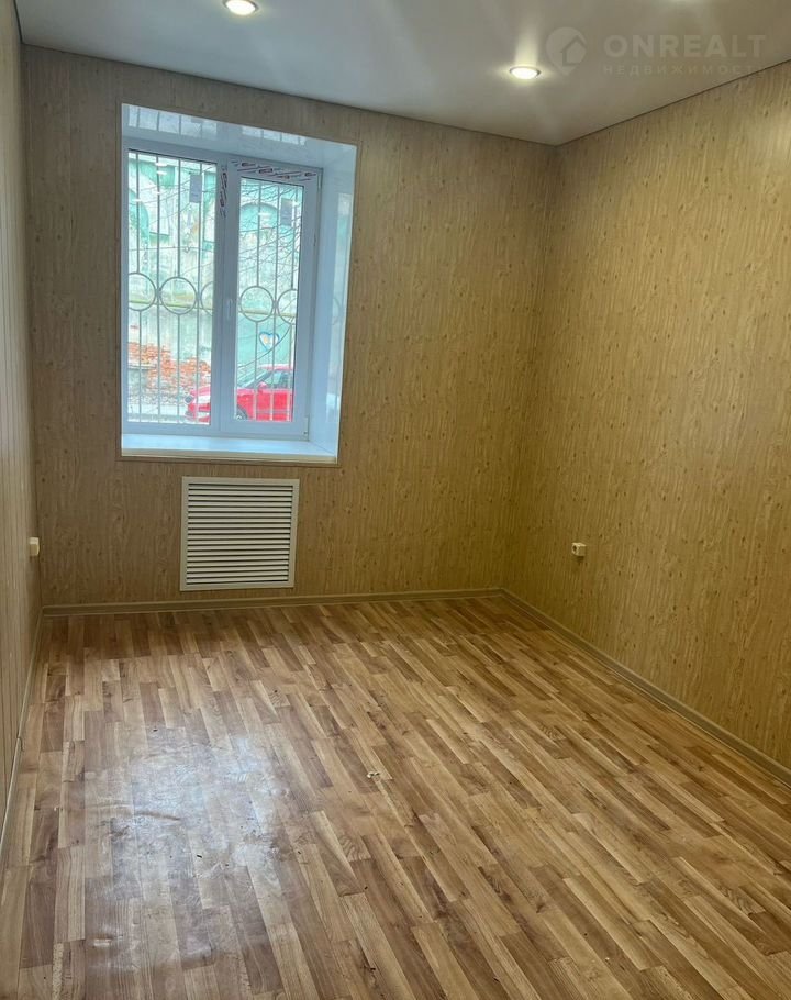 Помещение с косметическим ремонтом: оконные проемы большие, присутствует много естественного освещения. На полу линолеум. Обои под покраску.