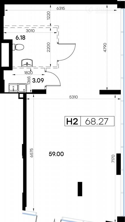 Общая площадь 68.27 м2