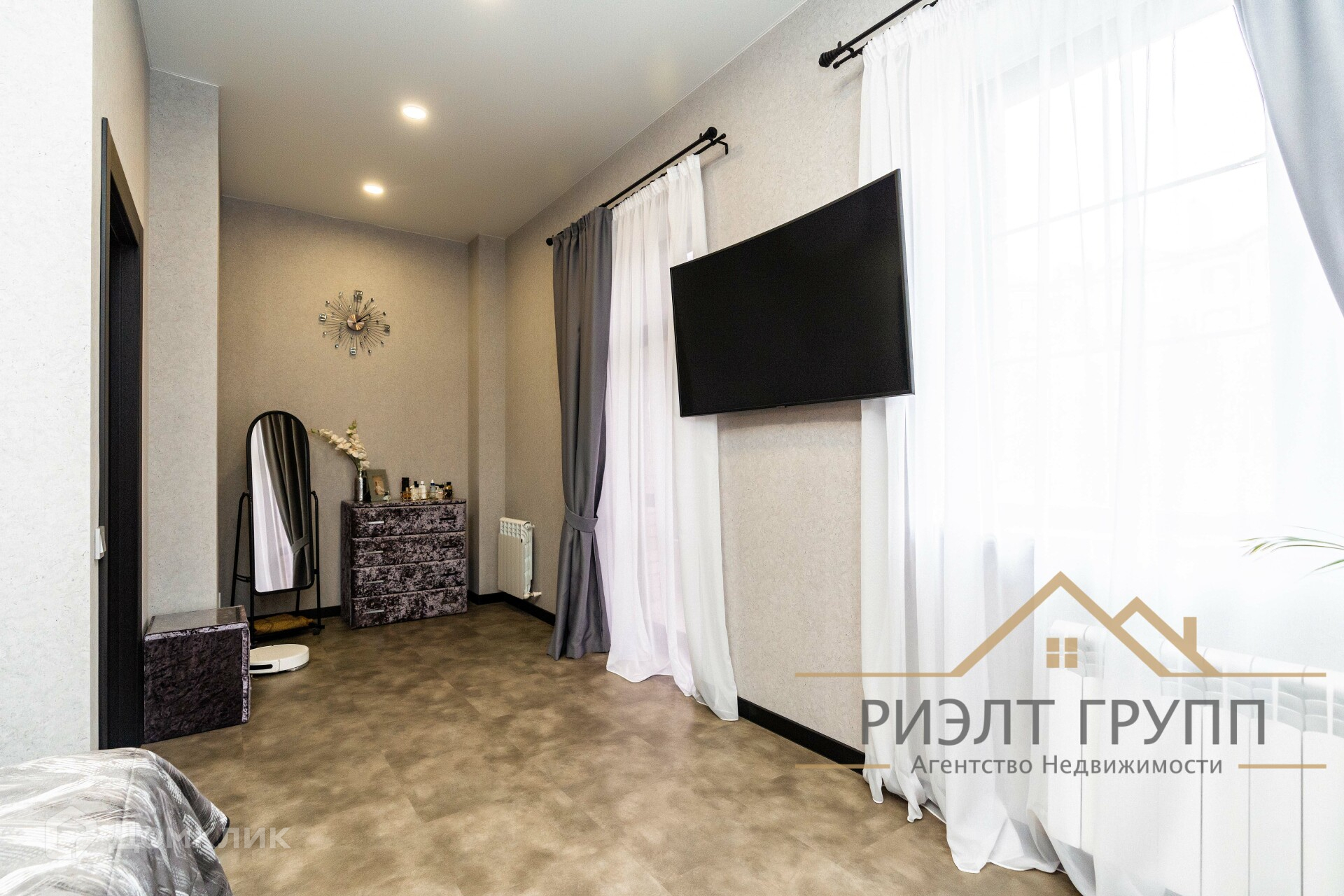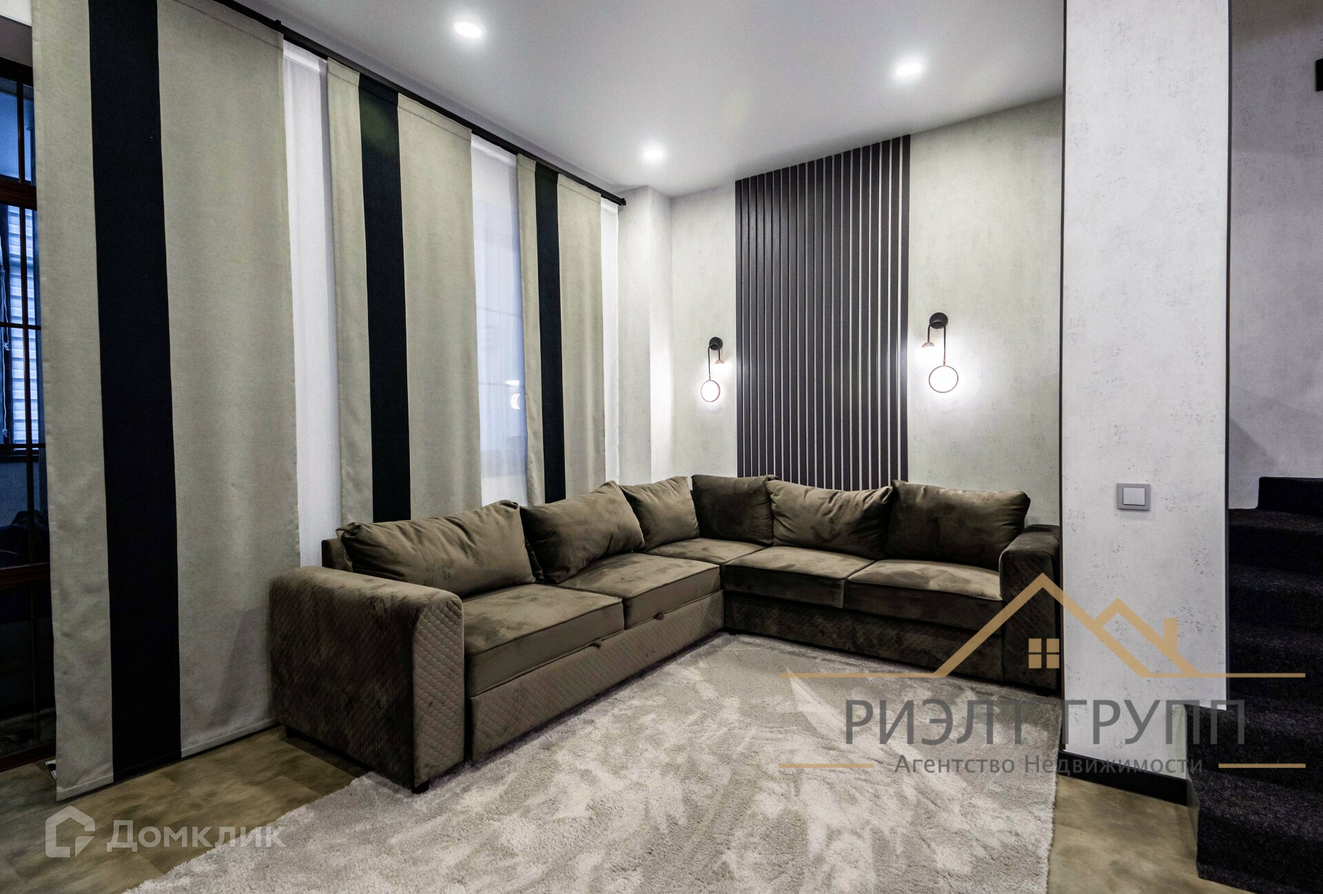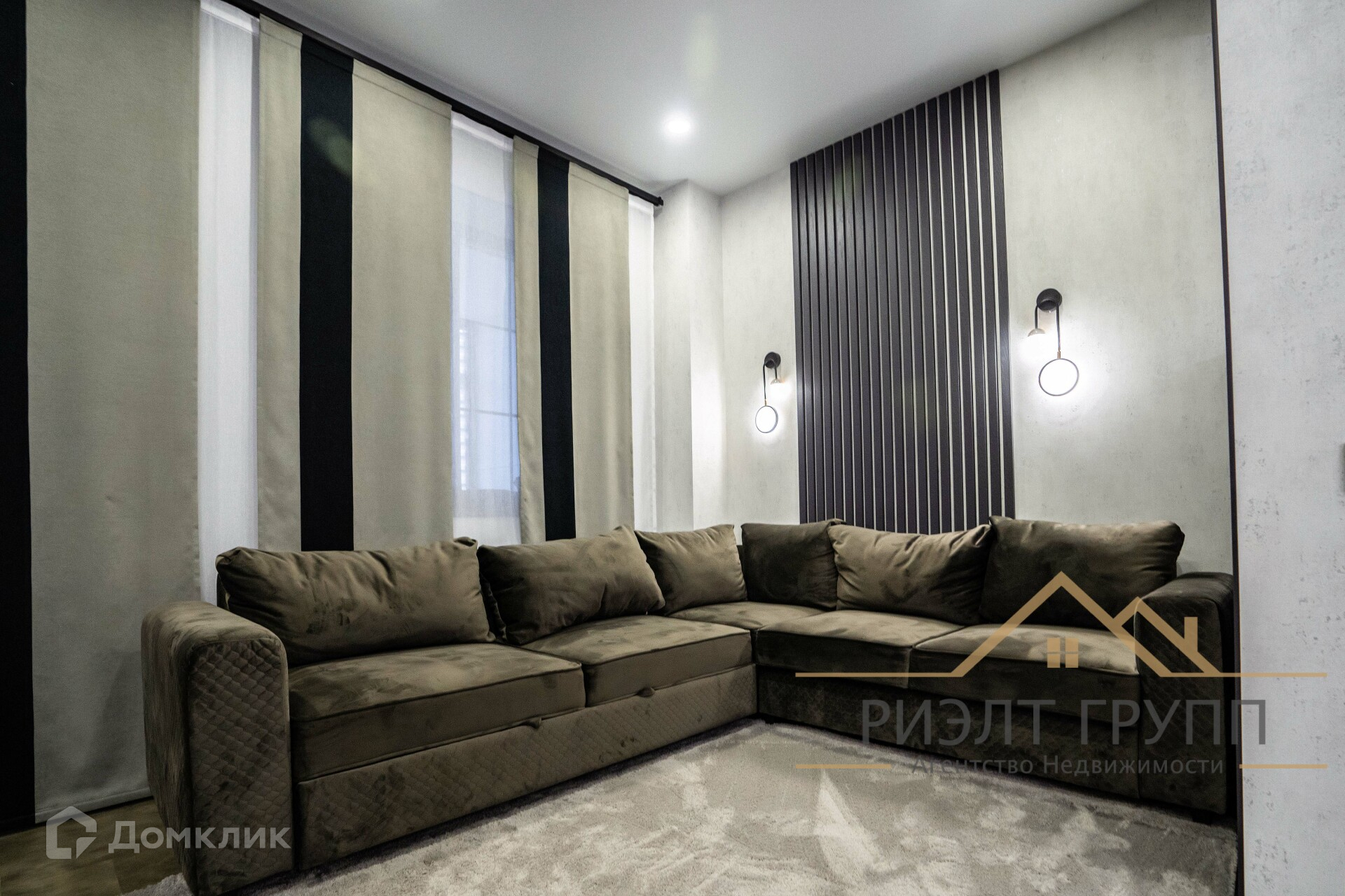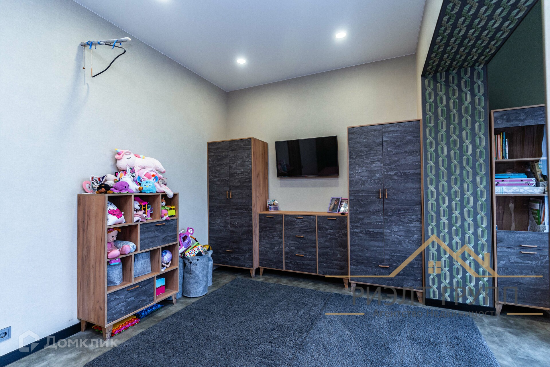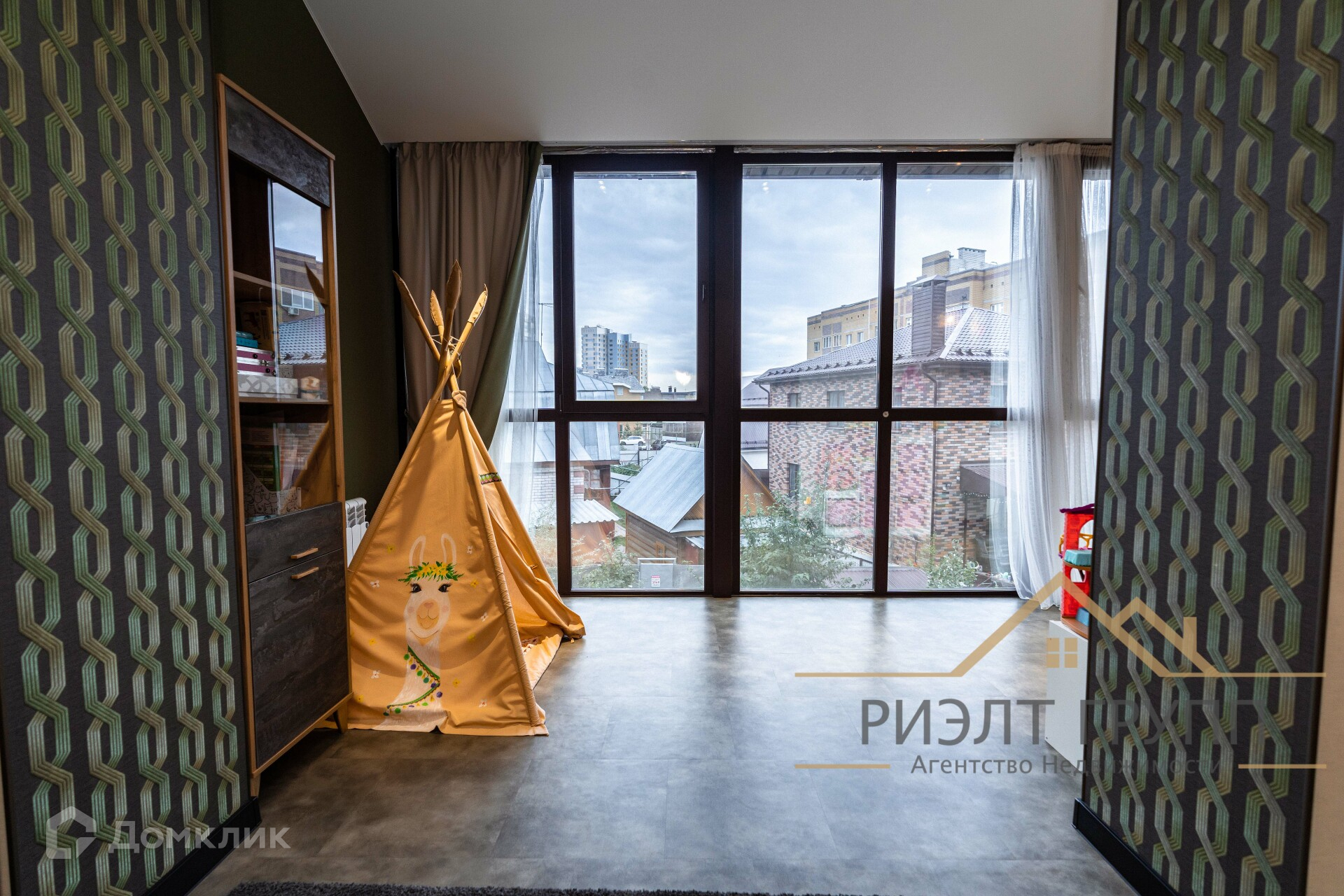 Была произведена замена остекления, установлено панарамное остекление тройной бронированный стеклопакет. На полу кварцвинил, немецкие тканевые обои, мебель выполнена под заказ ЛДСП Egger. Мягкая мебель, кровати, все выполнено под заказ.