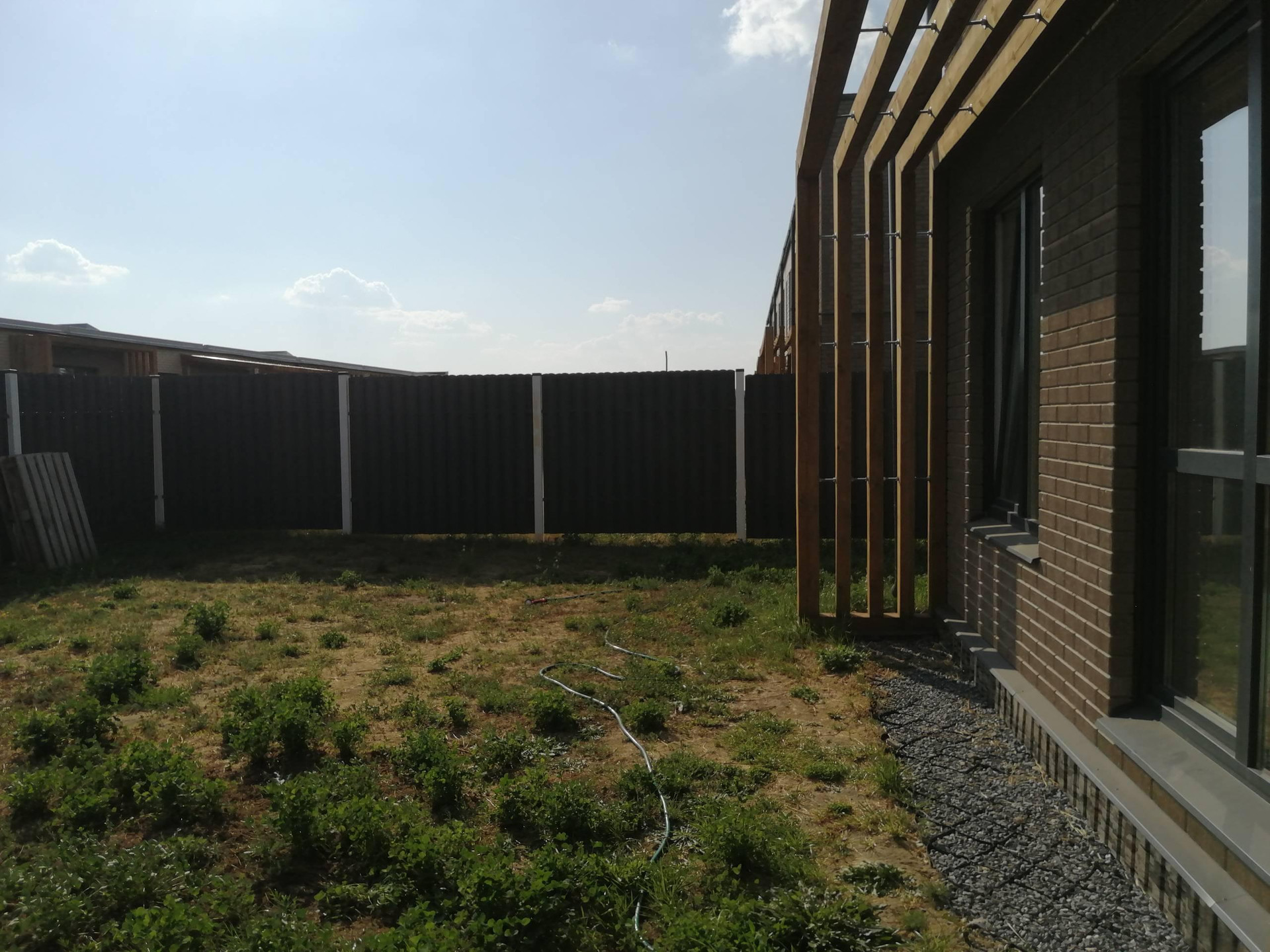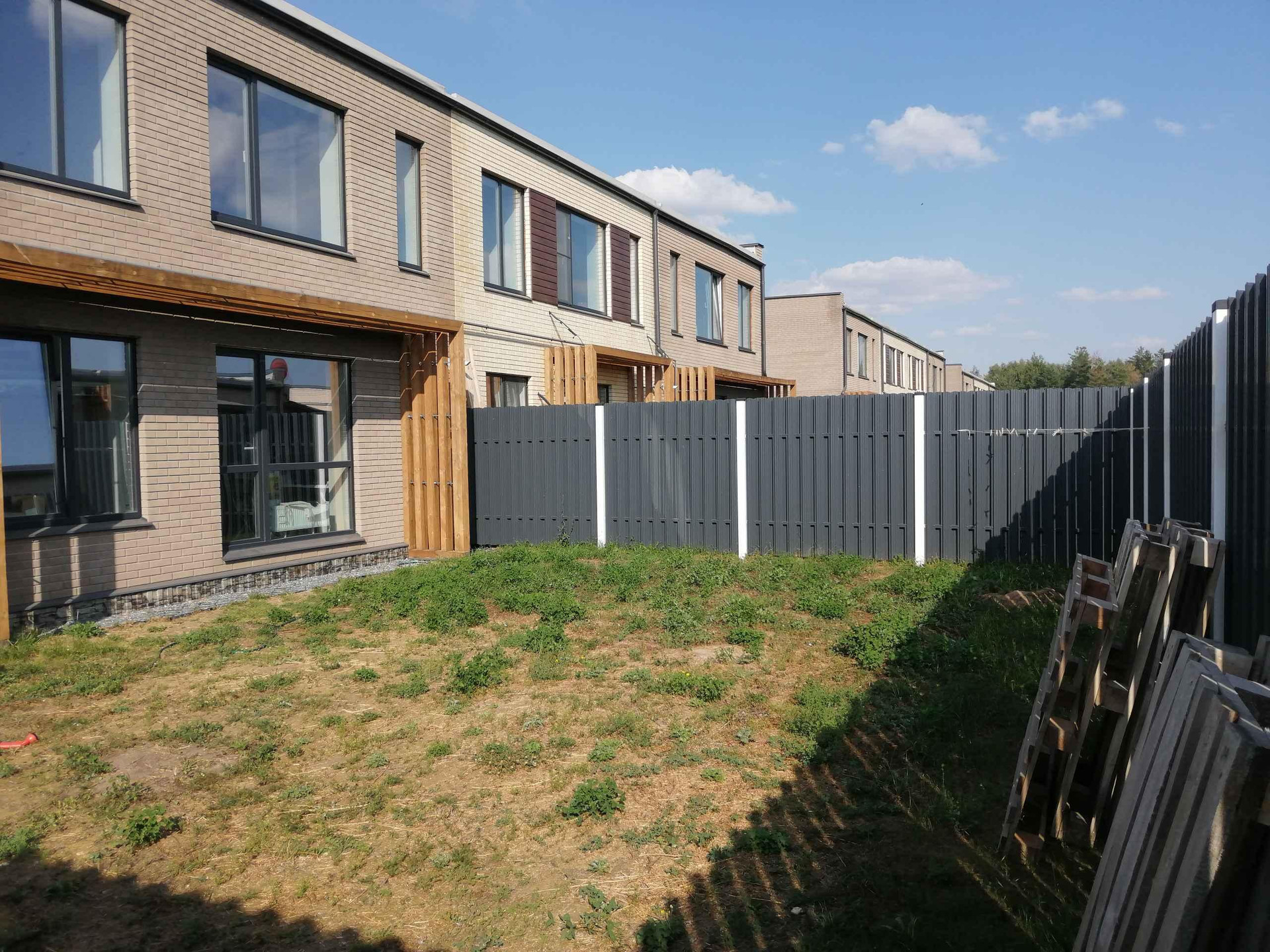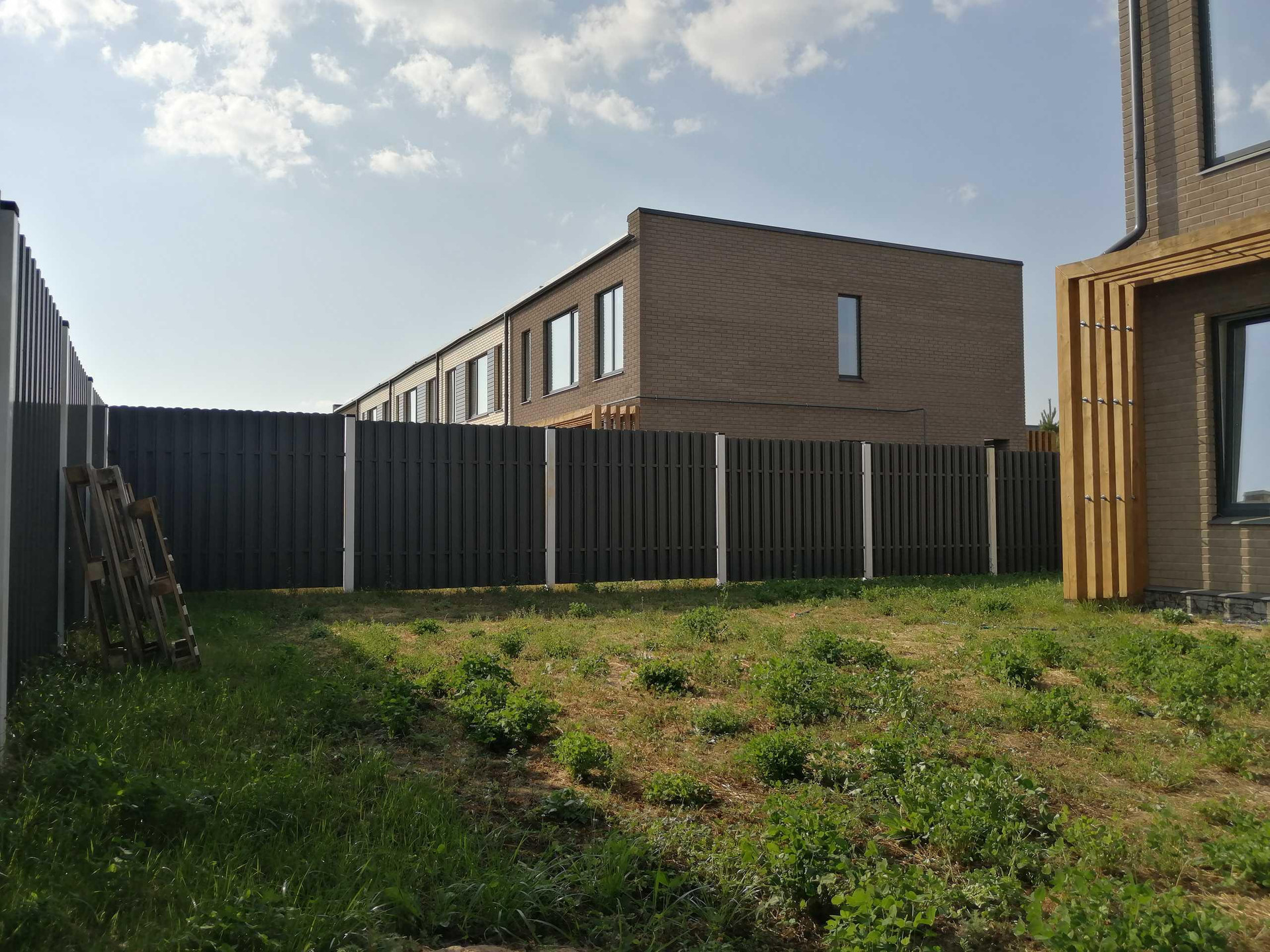 Участок на солнечной стороне, ровный, не затапливаемый. Металлическое вентилируемое ограждение.