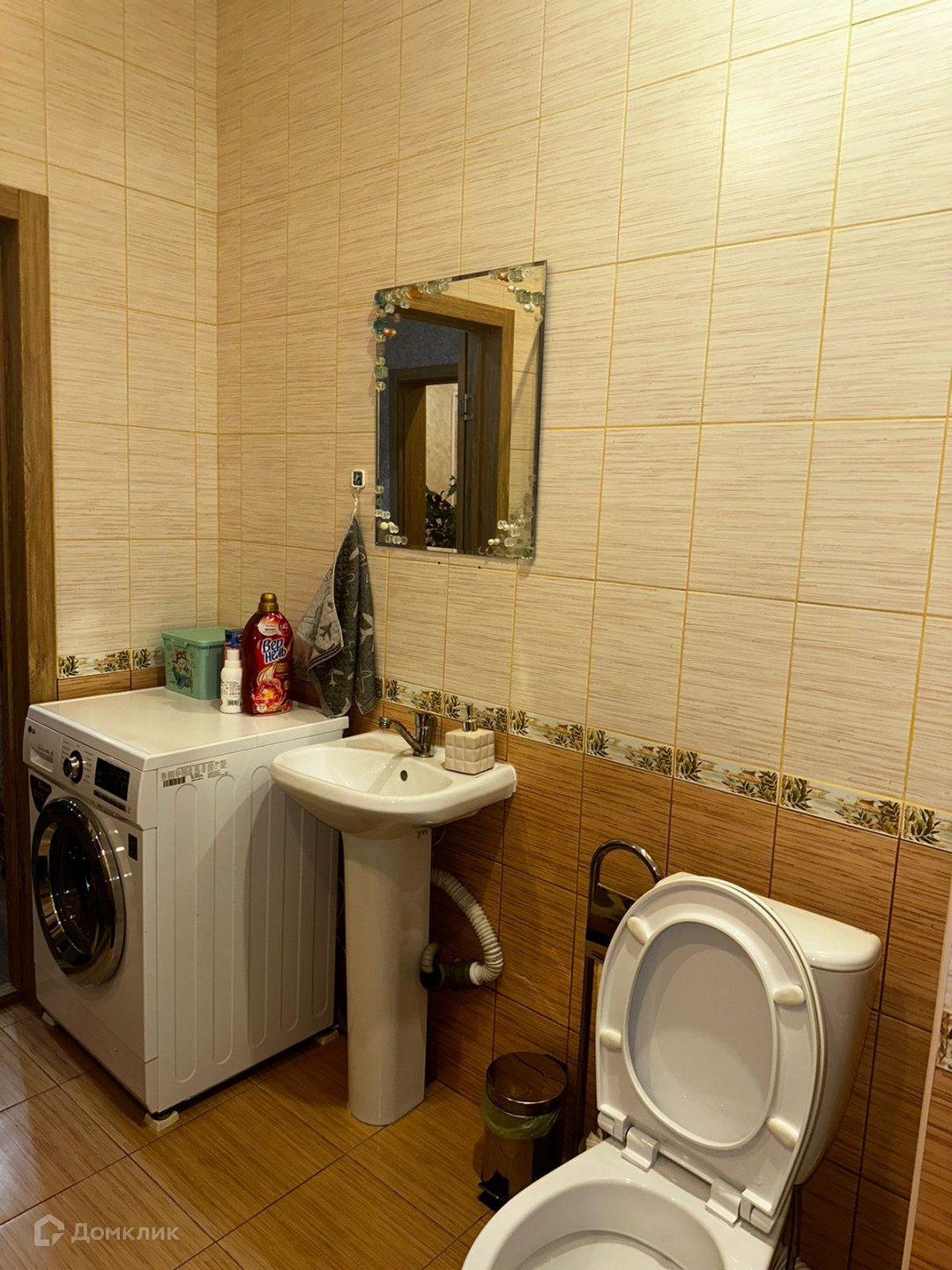 На 1 этаже везде плитка, в зале ламинат, так же по всему периметру  теплый пол.