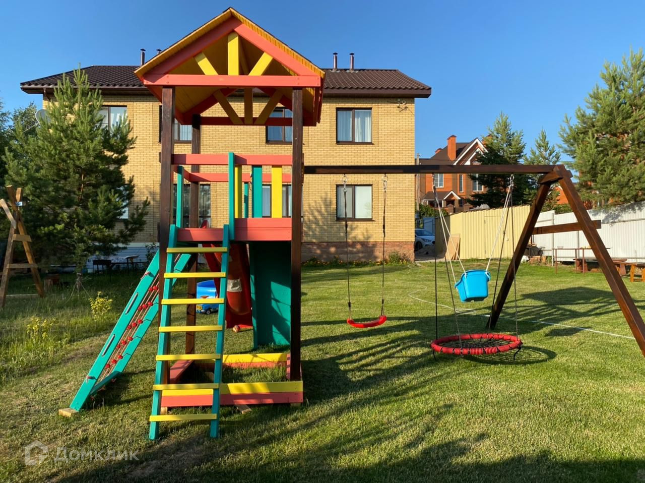 В просторной гостиной площадью 30м2 будет удобно принимать гостей, так же с гостиной имеется  выход на заднюю сторону двора, где расположена площадка для детей, территория озеленена газоном, что позволяет в теплую погоду с удовольствием проводить время на участке.